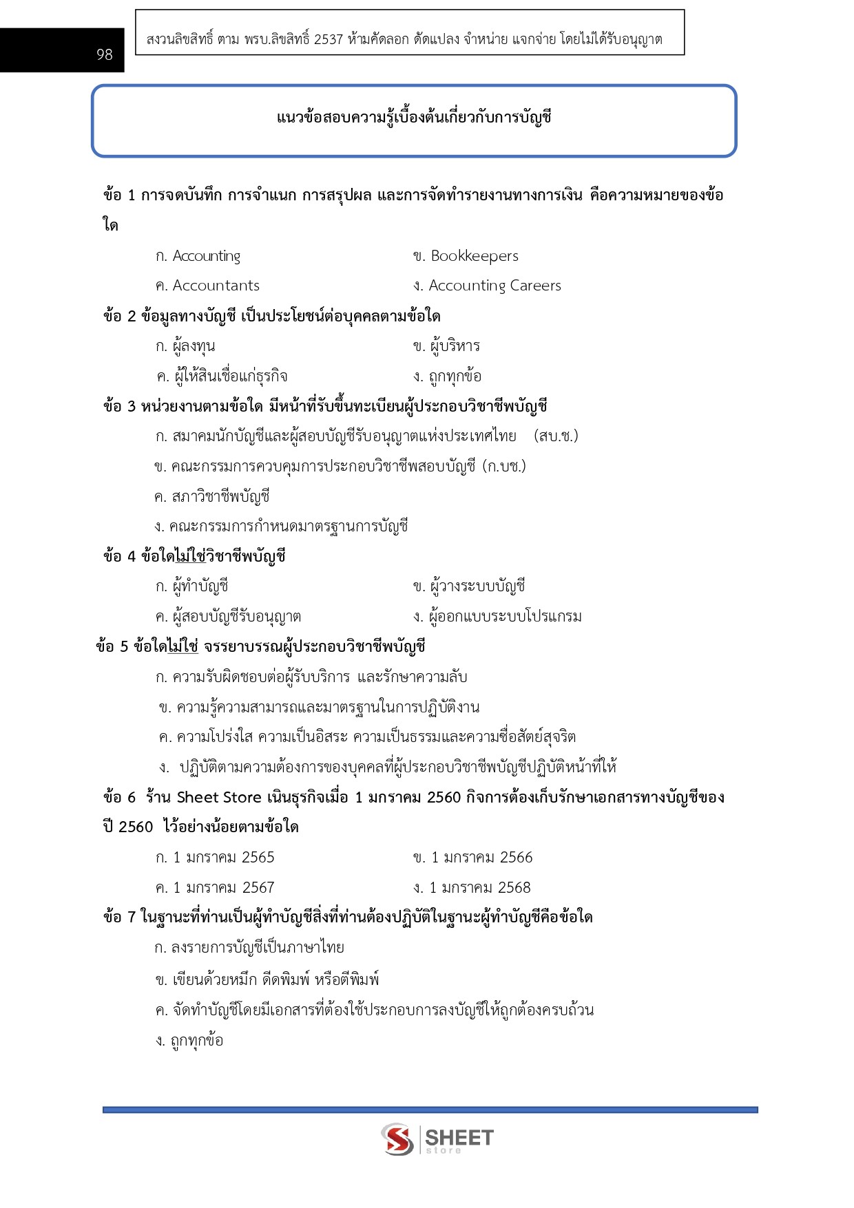 – แนวข้อสอบหลักการบัญชีขั้นต้น