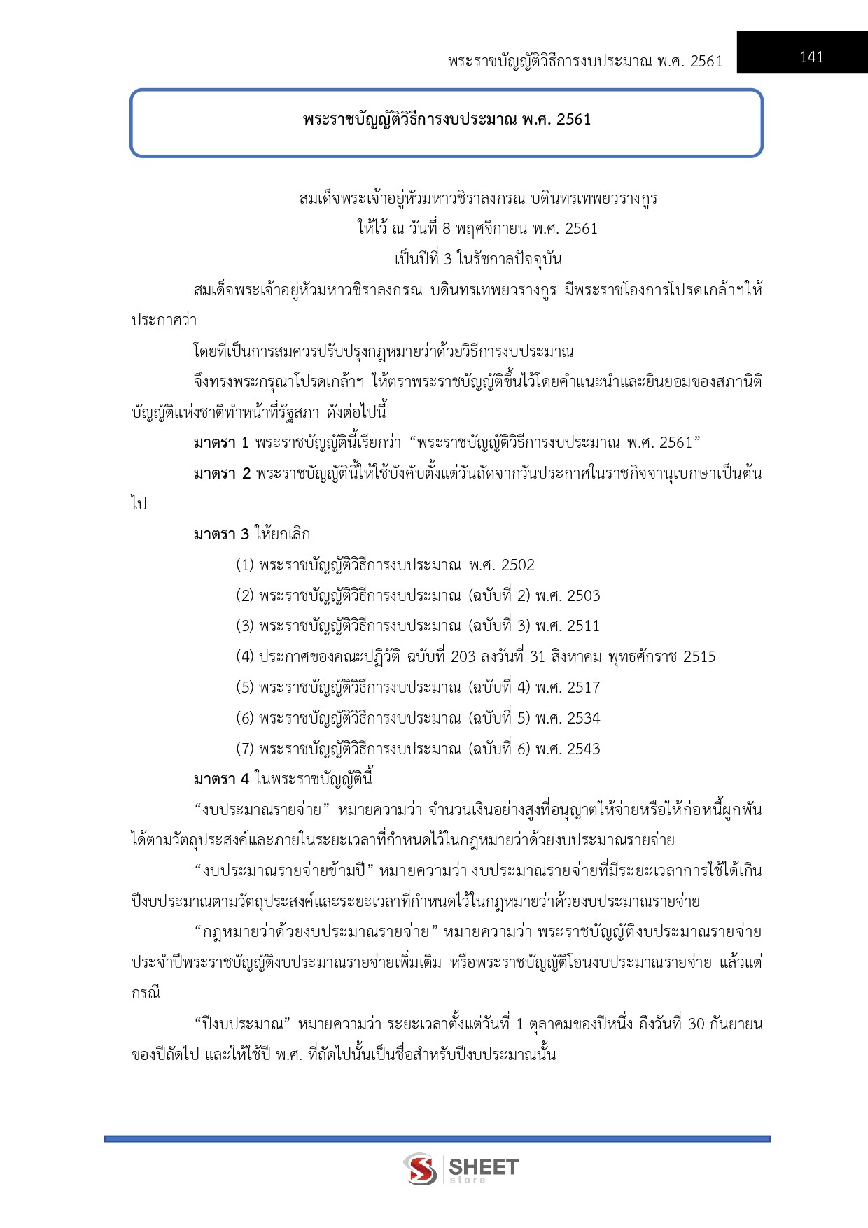 – พระราชบัญญัติวิธีการงบประมาณ พ.ศ. 2561