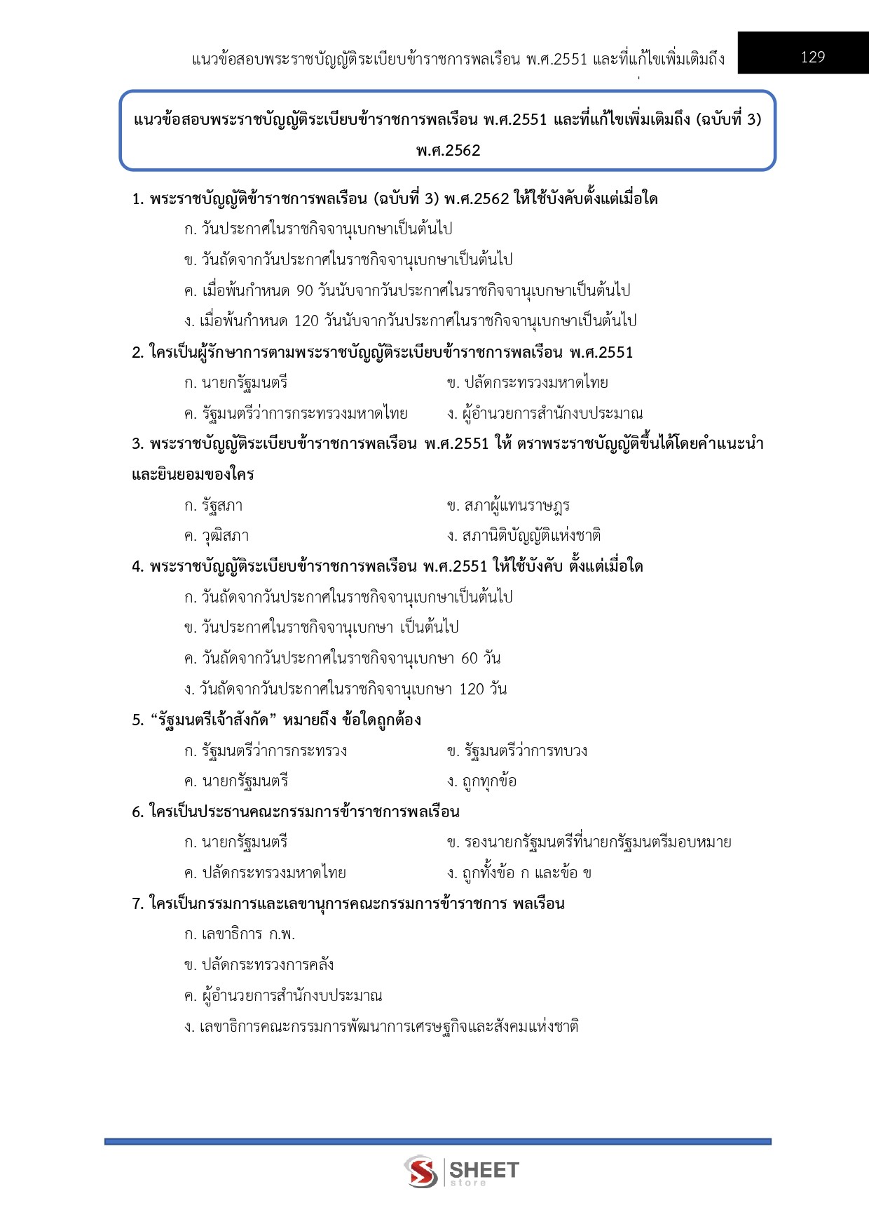 – แนวข้อสอบสรุปสาระสำคัญพระราชบัญญัติระเบียบข้าราชการพลเรือน พ.ศ. 2551 และที่แก้ไขเพิ่มเติมถึง (ฉบับที่ 3) พ.ศ. 2562