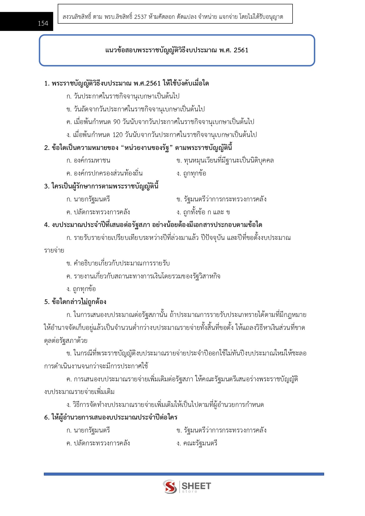 – แนวข้อสอบพระราชบัญญัติวิธีการงบประมาณ พ.ศ. 2561