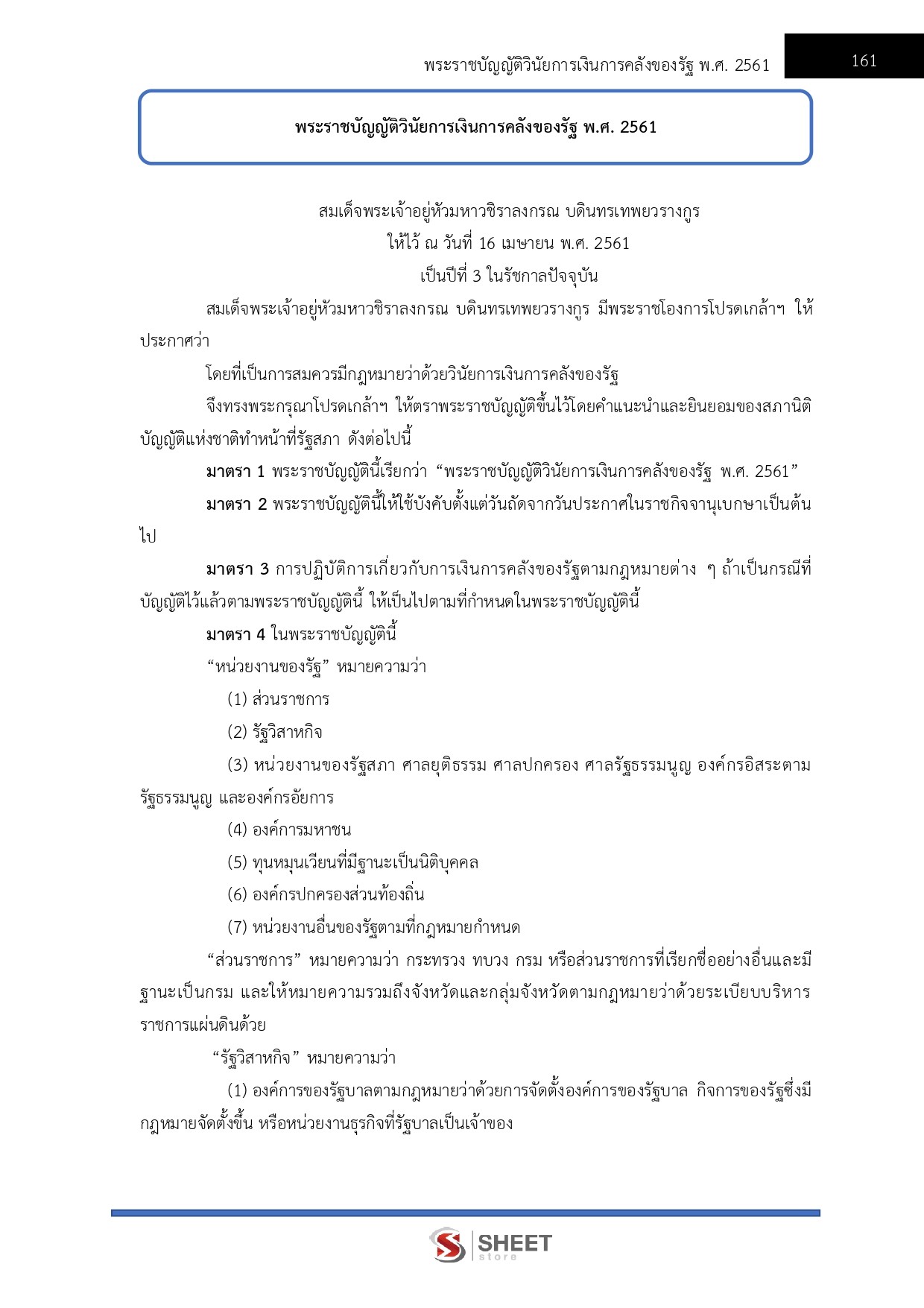 – พระราชบัญญัติวินัยการเงินการคลังของรัฐ พ.ศ. 2561