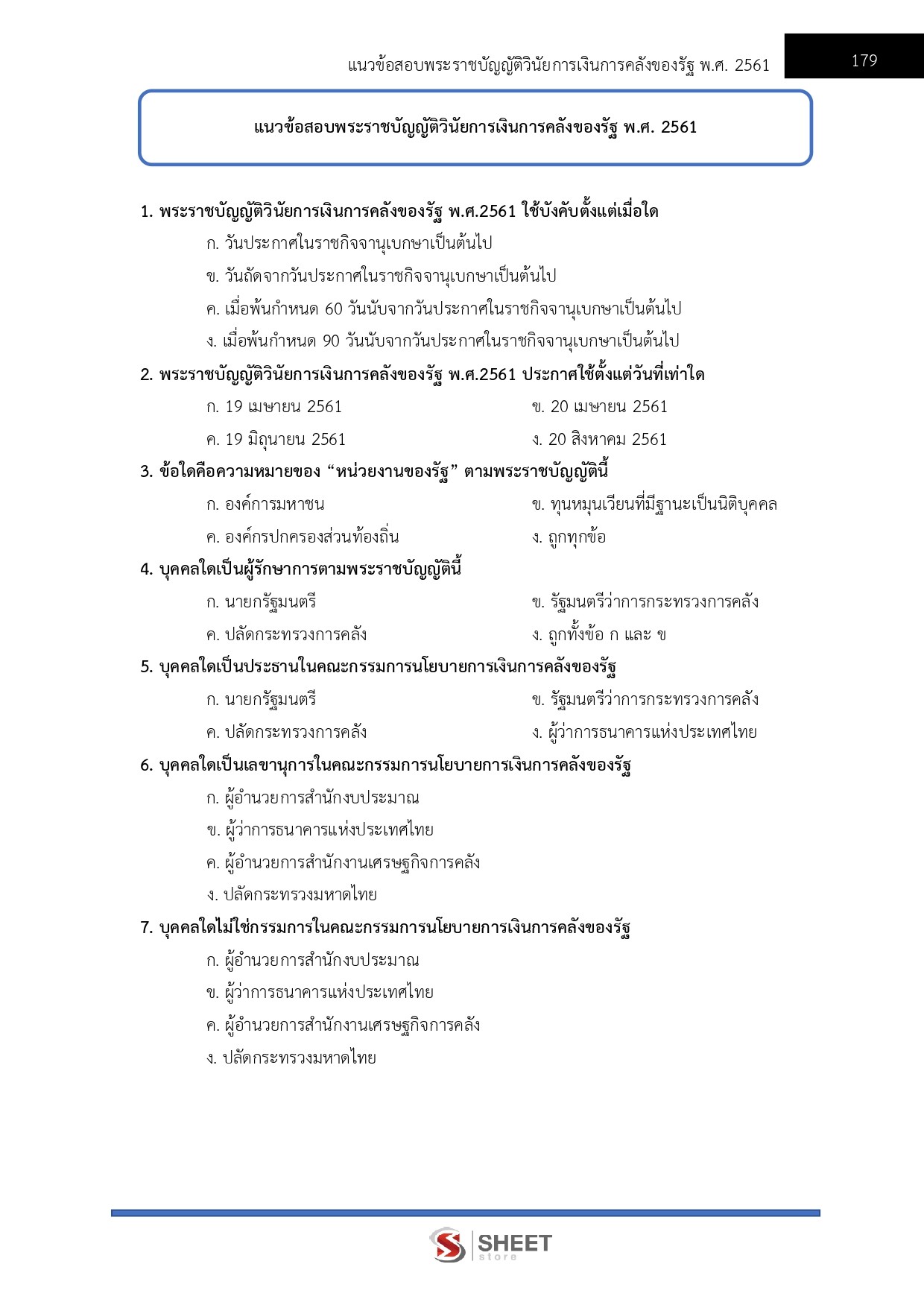 – แนวข้อสอบพระราชบัญญัติวินัยการเงินการคลังของรัฐ พ.ศ. 2561