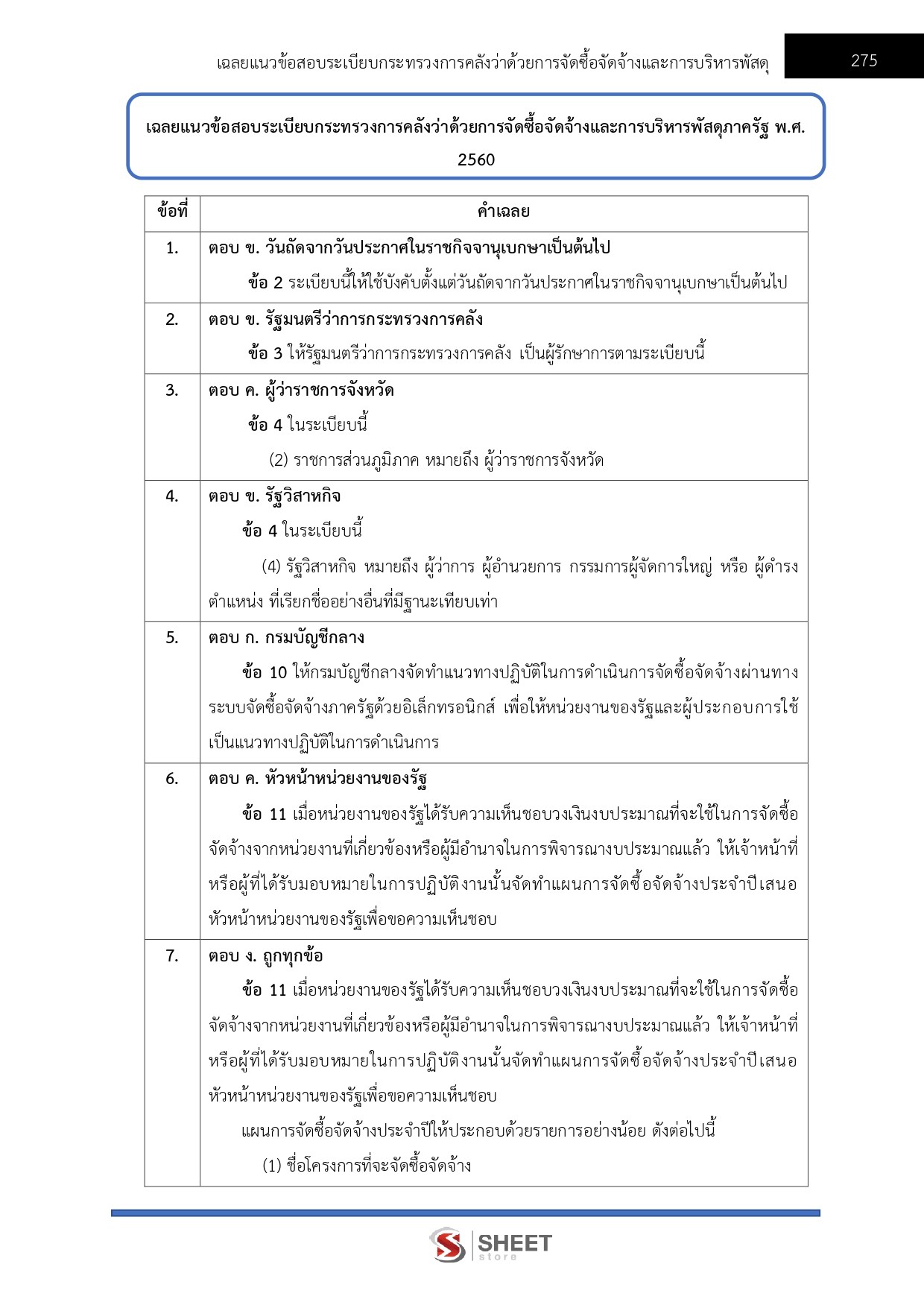 – แนวข้อสอบสรุปสาระสำคัญระเบียบกระทรวงการคลังว่าด้วยการจัดซื้อจัดจ้างและการบริหารพัสดุภาครัฐ พ.ศ. 2560
