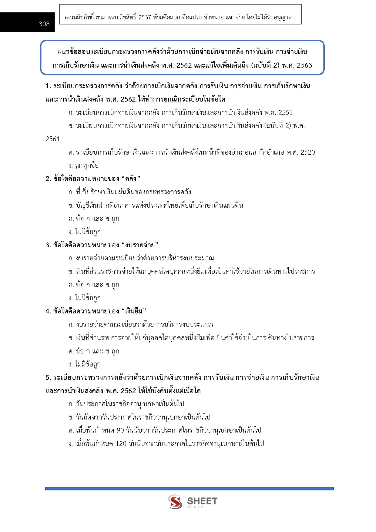 – แนวข้อสอบระเบียบกระทรวงการคลังว่าด้วยการเบิกเงินจากคลัง การรับเงิน การจ่ายเงิน การเก็บรักษาเงินและการนำเงินส่งคลัง พ.ศ. 2562 และแก้ไขเพิ่มเติมถึง (ฉบับที่ 2) พ.ศ. 2563