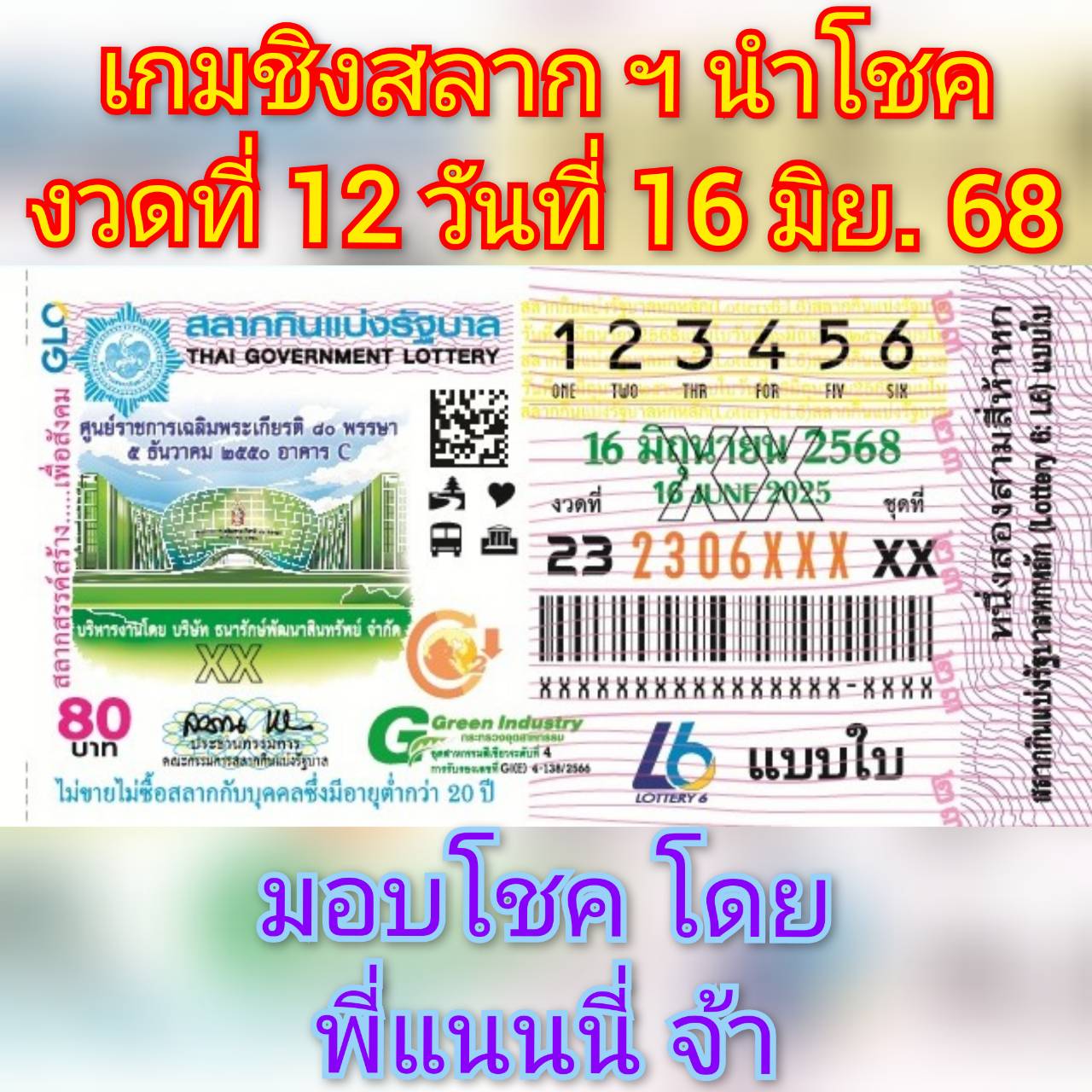 รางวัล :- สลาก ฯ นำโชค งวดที่ 12 วันที่ 16 มิถุนายน 2568 จำนวน 3 รางวัล ๆ ละ 3 ใบ และ กิตติมศักดิ์ 1 รางวัล คือ น้องนา