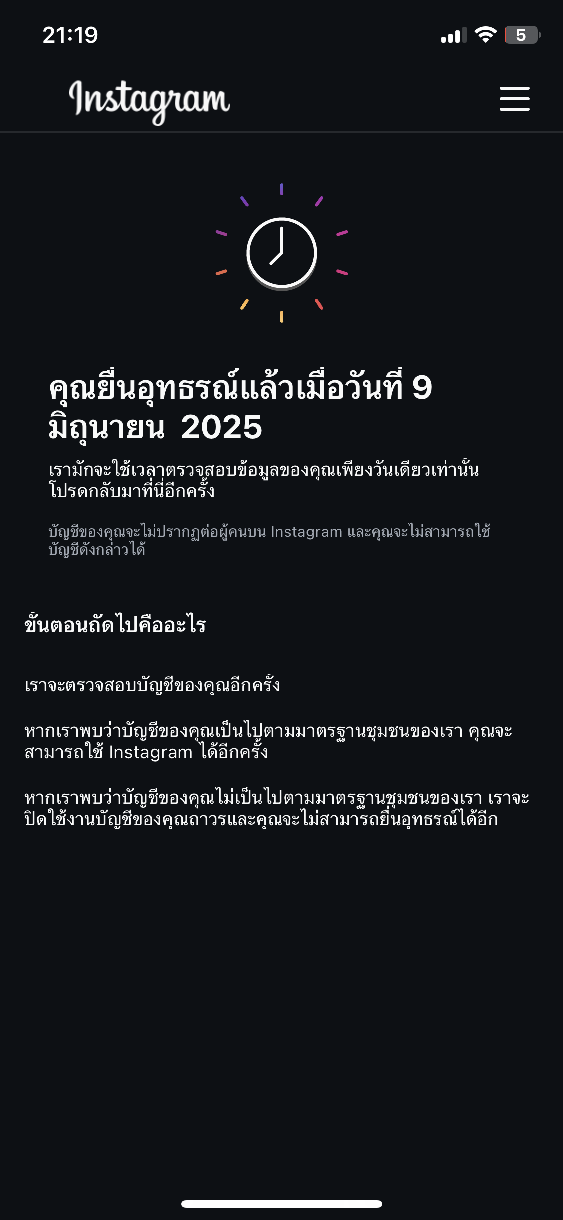 เรายื่นอุธรณ์ไปแล้ว4วัน. ถ้าเป็นแบบนี้ ไอจีจะกลับมาใช้งานได้มั้ยครับ