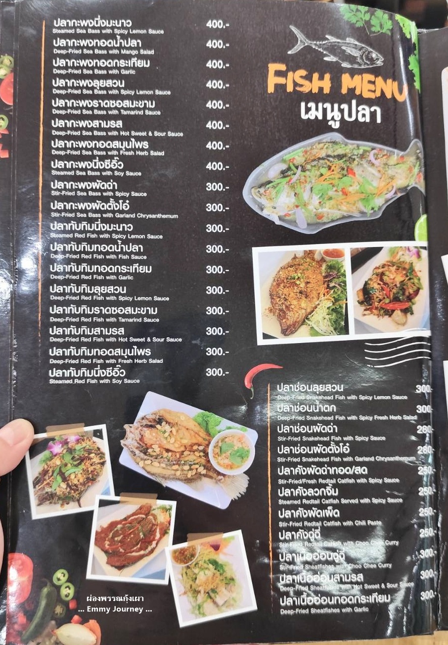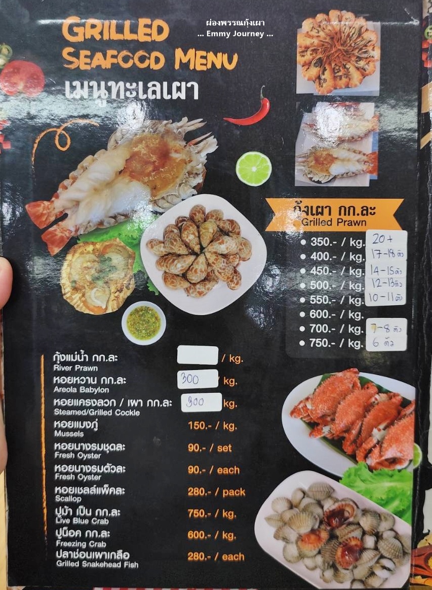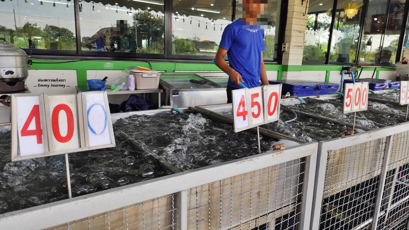 อาหารทะเลที่วางโชว์หน้าร้านมีเยอะพอสมควร