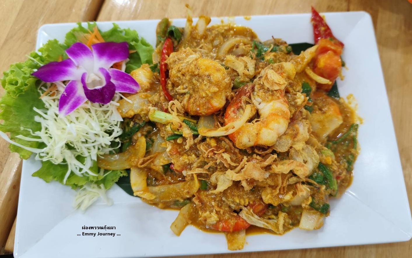 กุ้งผัดผงกะหรี่ 250 บาท เราชิมแค่น้ำๆกับผักนิดเดียว รสชาติก็โอเคนะ (ผัดผงกะหรี่เราไม่ชอบทาน ฉุนเครื่องเทศแถมเลี่ยน) คนอื่นทานได้เราก็โอเค