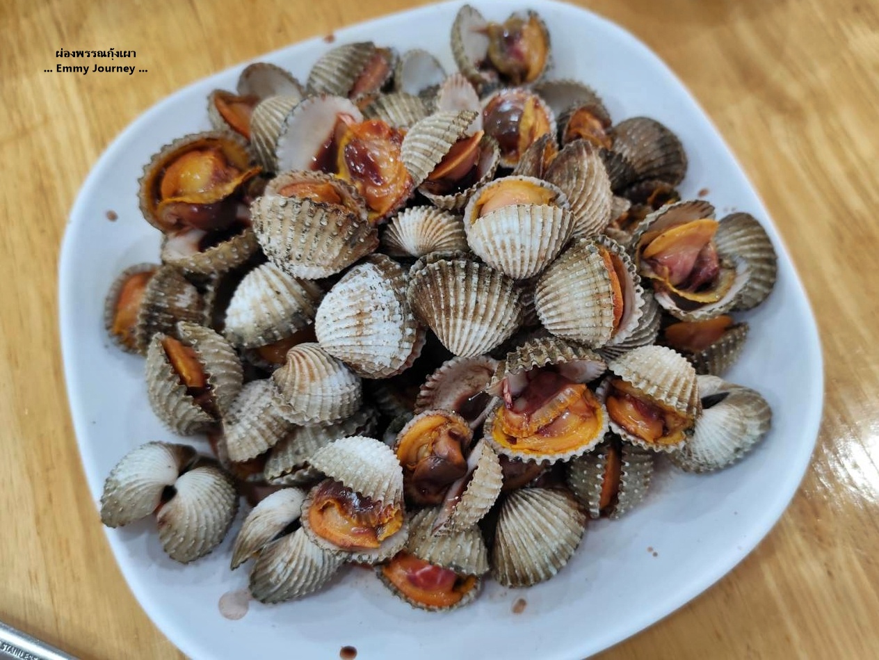 หอยแครงลวก 1 โล 300 บาท วันที่ไปทานหอยบางตัวไม่สด มีกลิ่นนิดๆ (แต่ครั้งล่าสุดที่ไปทานเมื่อเดือนพฤษภาคม 2568 หอยแครงตัวใหญ่ สด อร่อยมาก)