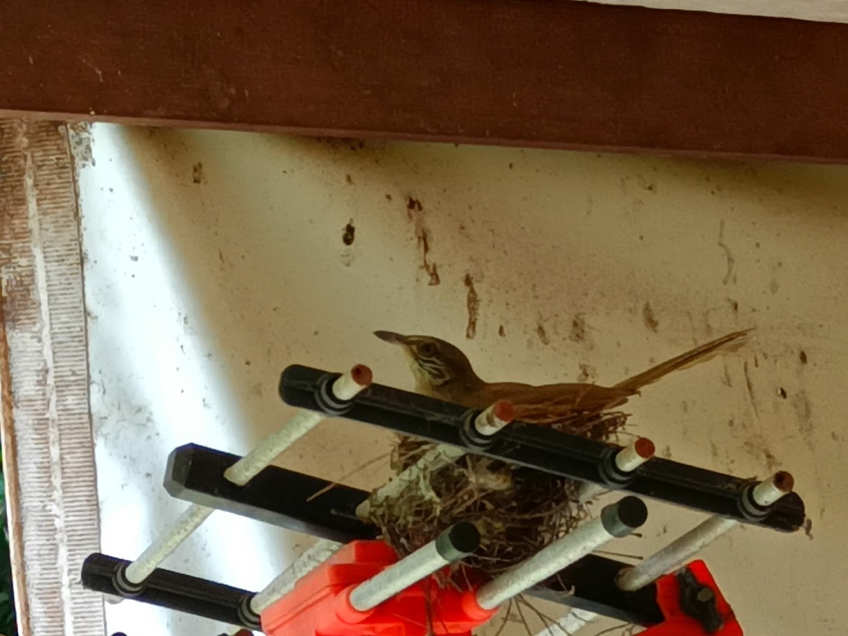 ที่น้องนกมาอาศัยทำรังที่นี่ มันคงรู้ถึงความปลอดภัยจากคนและลิง ลิงแถวนี้ร้ายกาจมาก สมัยหนึ่งแถวนี้มีไก่ป่าหลายร้อย ปัจจุบันไม่มีเลย เพราะเจอลิงล้วงไข่กินจนไก่สูญพันธุ์ไปเลย