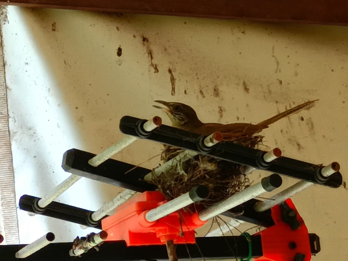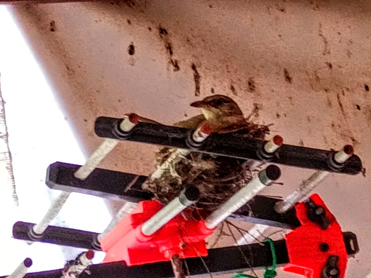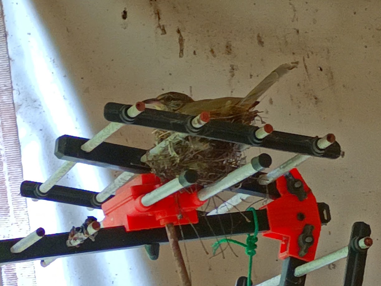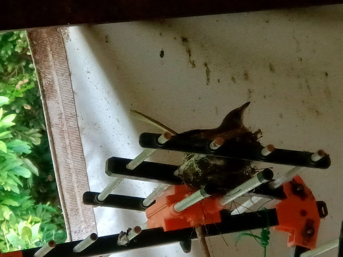 แต่รังนี้มาเห็นตอนเป็นรังแล้ว พิจารณาดูแล้วไม่อันตรายกับน้องนก เลยปล่อยให้น้องนกทำรังต่อไป