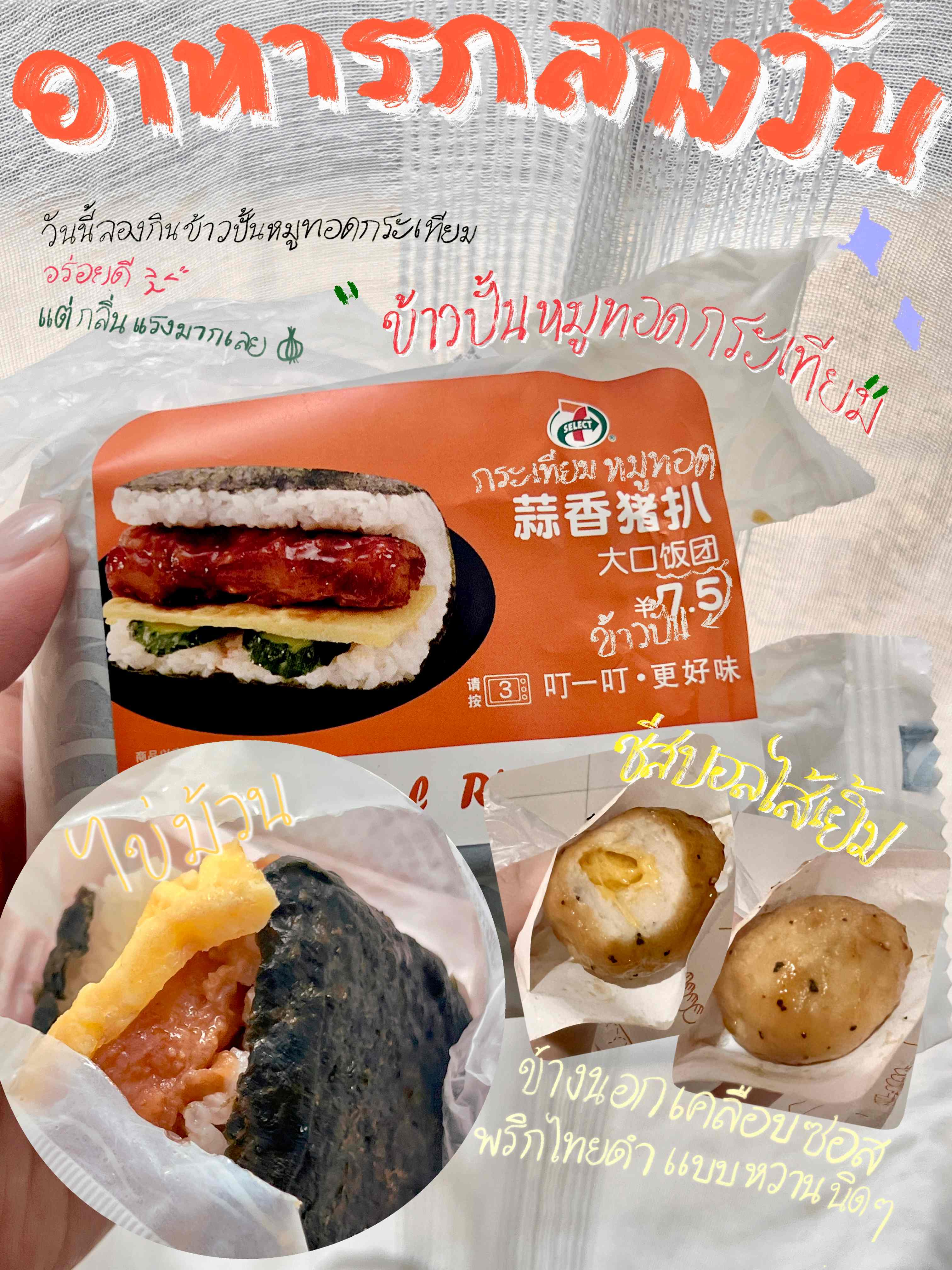 วันนี้อยากแบ่งปันมื้อกลางวันง่าย ๆ กับทุกคน เป็นข้าวปั้นหมูทอดกระเทียมจากร้านสะดวกซื้อ 🍙