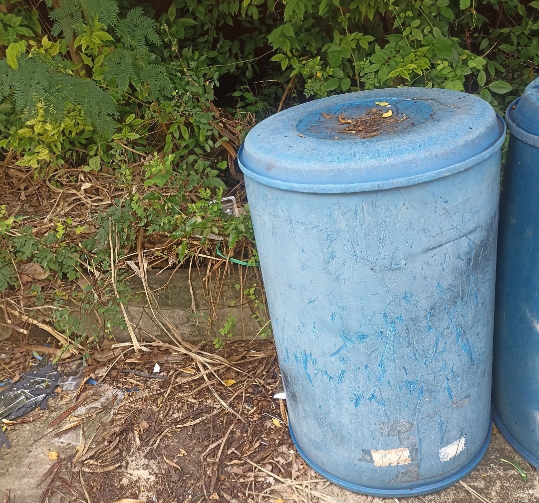 ถ้าถามว่าทำไมไม่ยกให้มันหงายเอง แจ้งก่อนว่ามันหนักมากค่ะ ยกไม่ขึ้น (ถ่ายโชว์แค่ถังเดียวที่คว่ำเพราะถังอื่นมันมีเลขที่บ้านค่ะ)