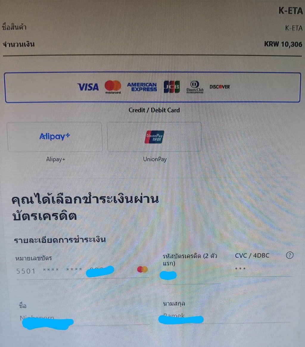 ลงทะเบียน K-ETA ถึงขั้นตอนการจ่ายค่าธรรมเนียมแล้วจ่ายไม่ได้ แนะนำหน่อยคะ