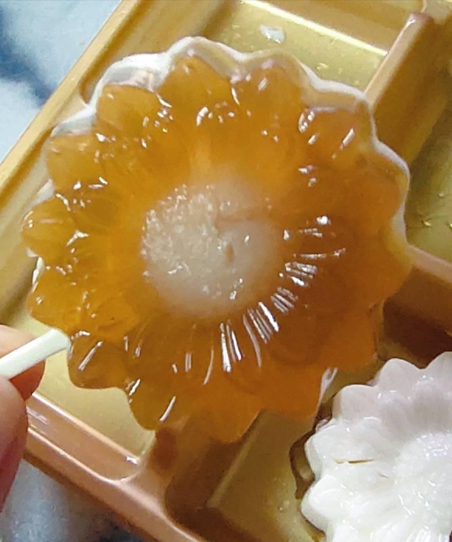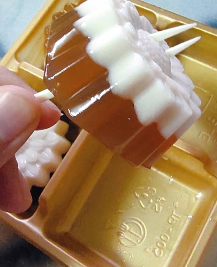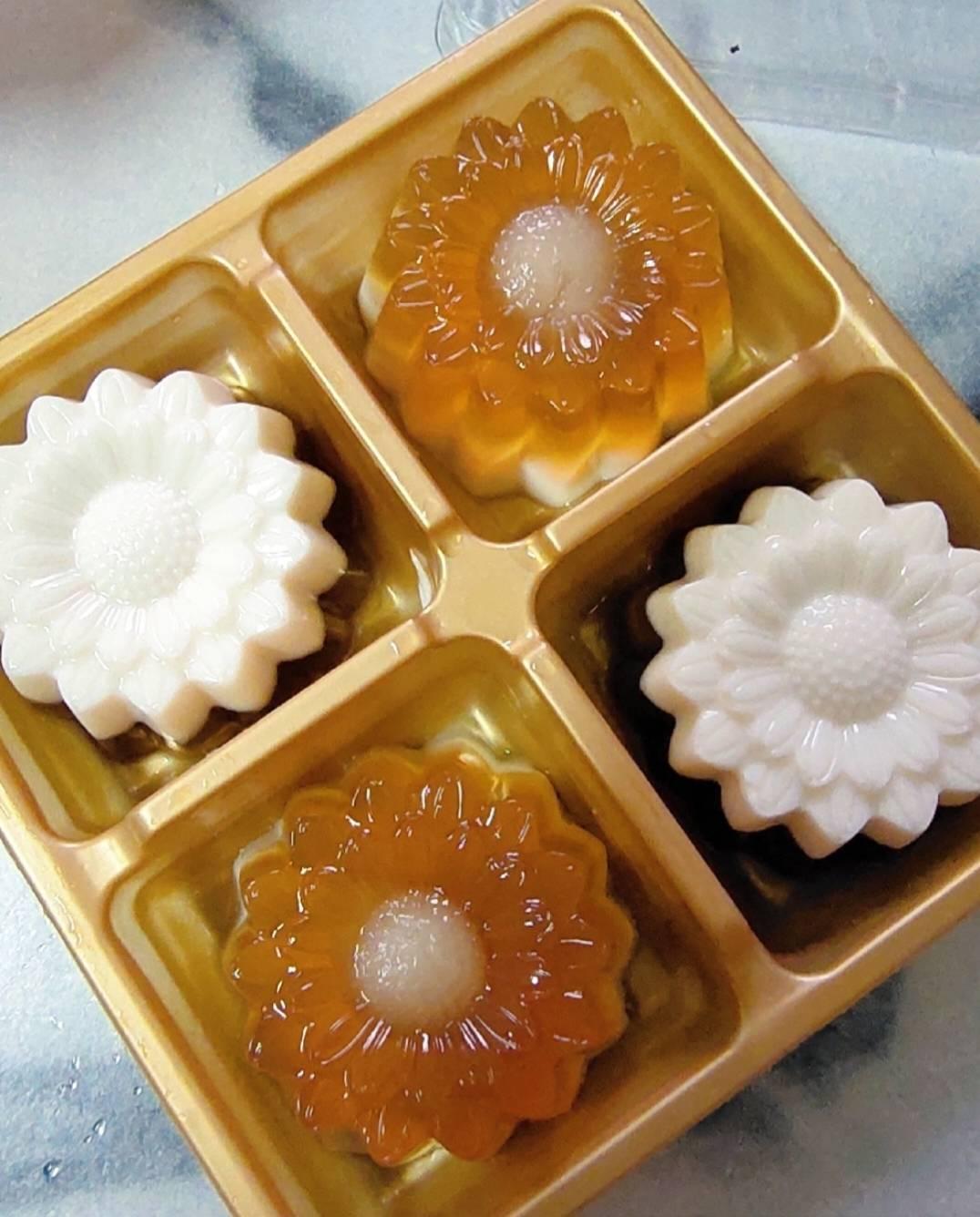 ชี เป็น วุ้นกะทิมี เลเยอร์ รูปดอกไม้ สวยงามตาม ท้องเรื่อง