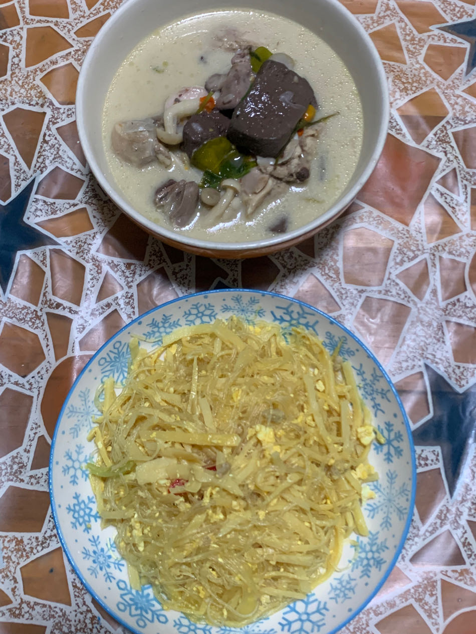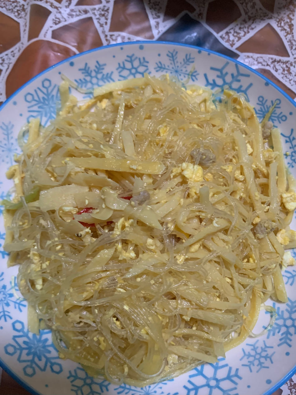ผัดหน่อไม้ผัดไข่ใส่วุ้นเส้น