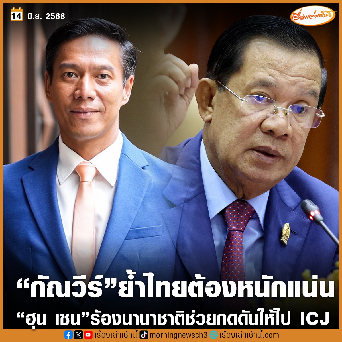 “กัณวีร์” ย้ำไทยต้องหนักแน่นไม่หลงกลการเมืองชาตินิยม ด้าน “ฮุน เซน” เรียกร้องให้ประชาคมโลกให้กดดันไทย