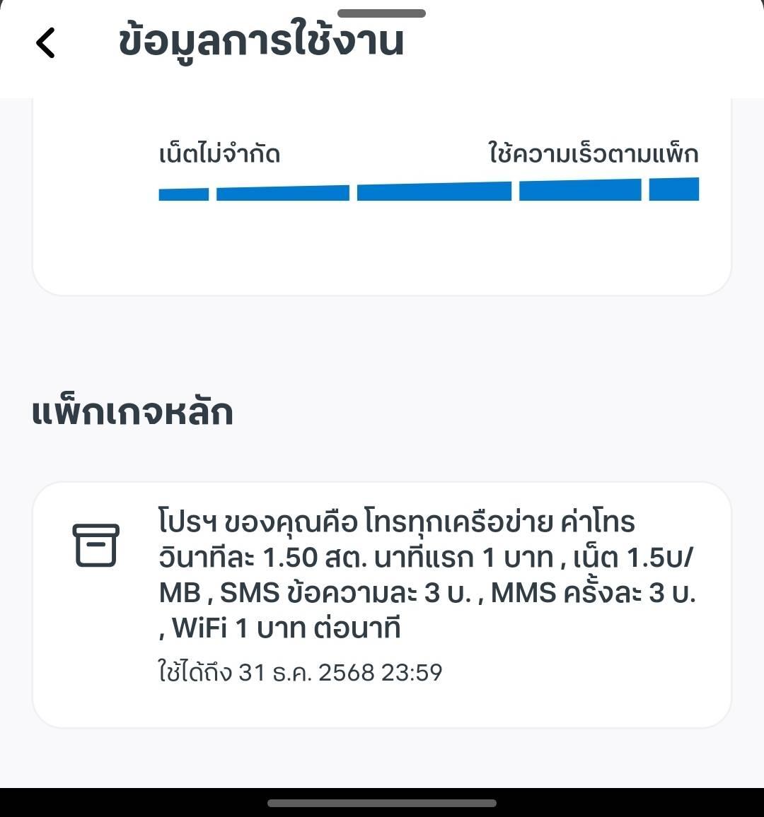 วันที่ 27/09/2025 ไปเปลี่ยนโปรโมชั่นเป็น 699 บาท เน็ตไม่อั้น ที่ทรูช๊อบสาขาเมกาบางนา มี SMS เข้ายืนยันเรียบร้อย จากนั้นวันที่ 02/10/2025 มี SMS เข้า แพ็คเกตหลักคือ Khum Special 159 บาท เน็ตสูงสุด 5 GB