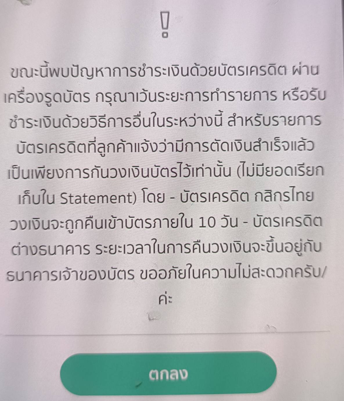 บัตรเครดิตกสิกร ตอนนี้ใช้รูดไม่ได้