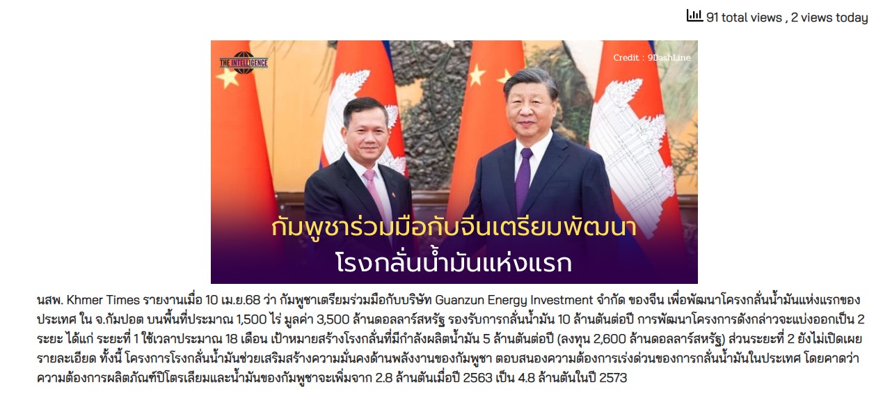 กัมพูชามีโรงกลั่นน้ำมันใช้ได้รึยัง