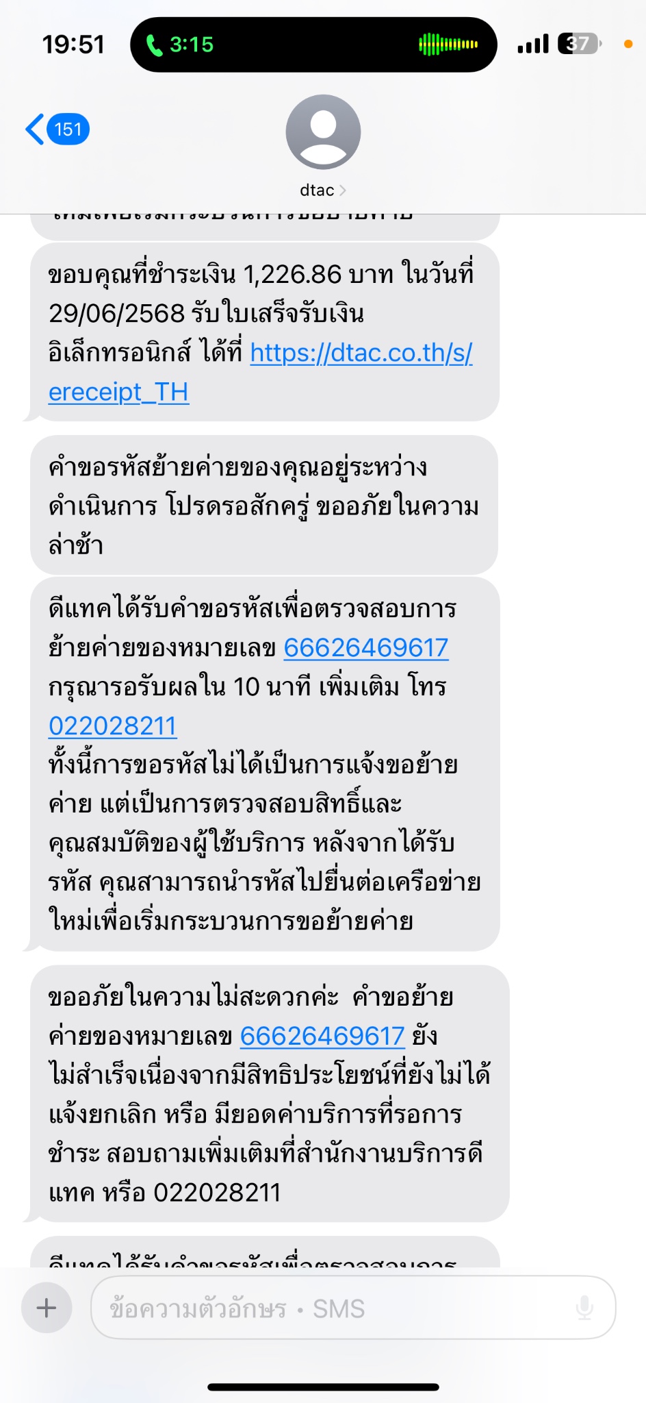เราจึงชำระยอดไป และขอย้ายรหัสย้ายค่ายอีกรอบ แต่ทางดีแทคก็ยังแจ้งแบบเดิม เราจึงพยายามโทรติดต่อทาง ดีแทคหลายรอบ ย้ำว่าหลายรอบมาก แต่ไม่มีใครรับเลย เหมือนรู้ว่าเราจะยกเลิก จึงไม่ยอมรับสาย