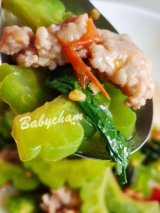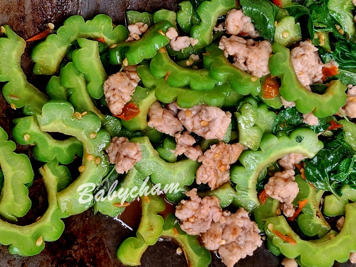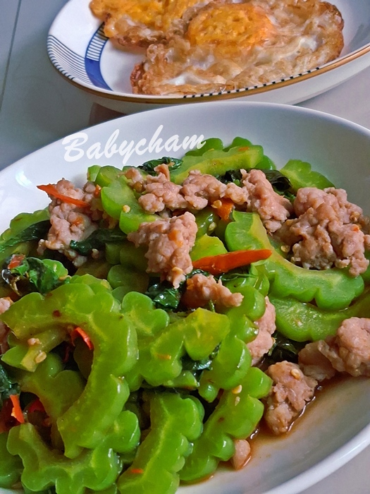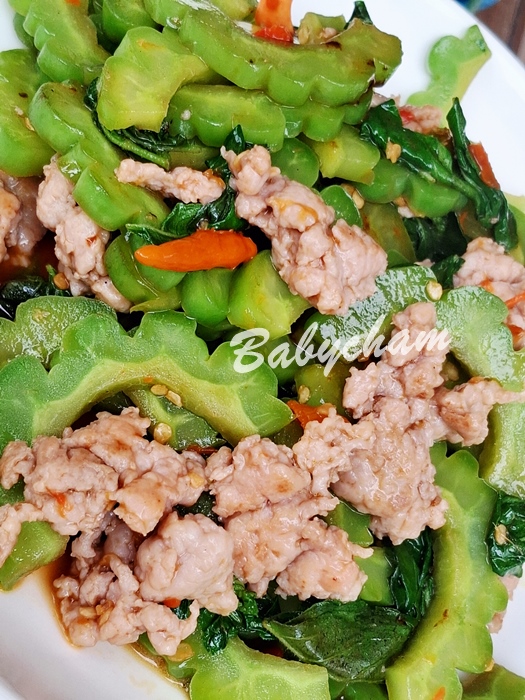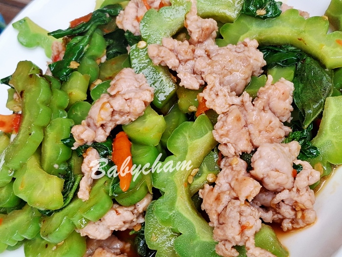 เมนูนี้ผัดกะเพรามะระนี้ ใส่หมูสับ เข้ากันดีมาก แต่ครั้งต่อไปจะลองเปลี่ยนเนื้อสัตว์อื่นๆ ดูว่าจะเข้ากันได้ไหม