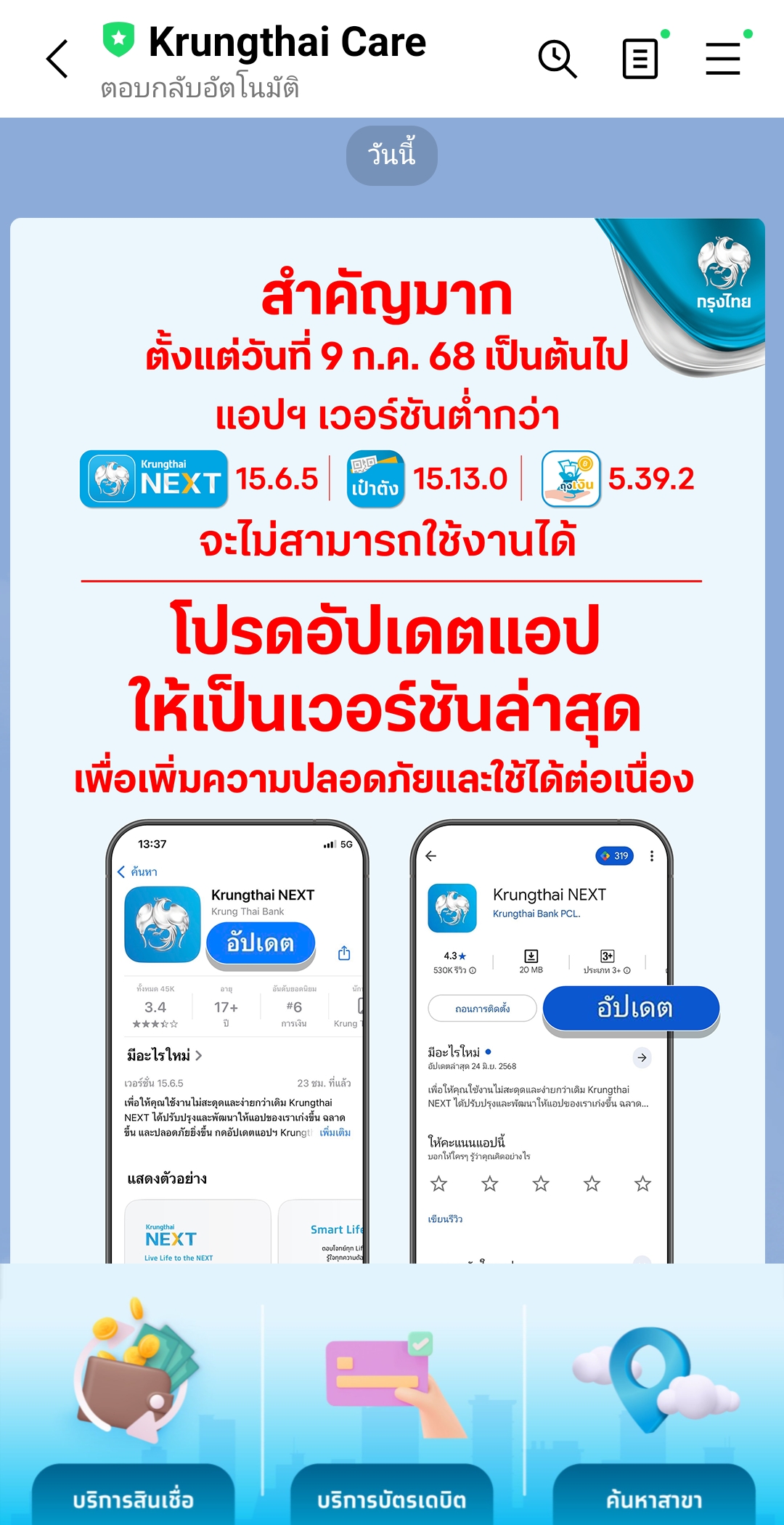 Krungthai Care แจ้ง update version !? นี้คือจริง ใช่มั้ยคับ