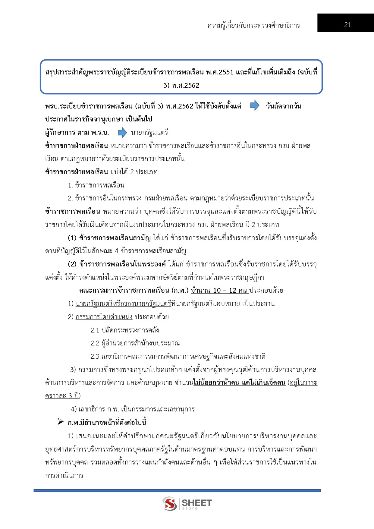 - สรุปสาระสำคัญพระราชบัญญัติระเบียบข้าราชการพลเรือน พ.ศ. 2551 และแก้ไขเพิ่มเติม (ฉบับที่ 3) พ.ศ. 2562