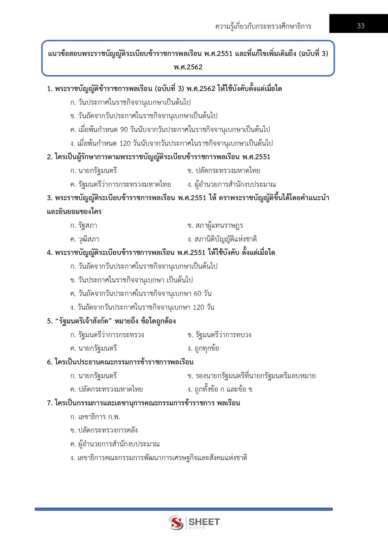 - แนวข้อสอบพระราชบัญญัติระเบียบข้าราชการพลเรือน พ.ศ. 2551 และแก้ไขเพิ่มเติม (ฉบับที่ 3) พ.ศ. 2562