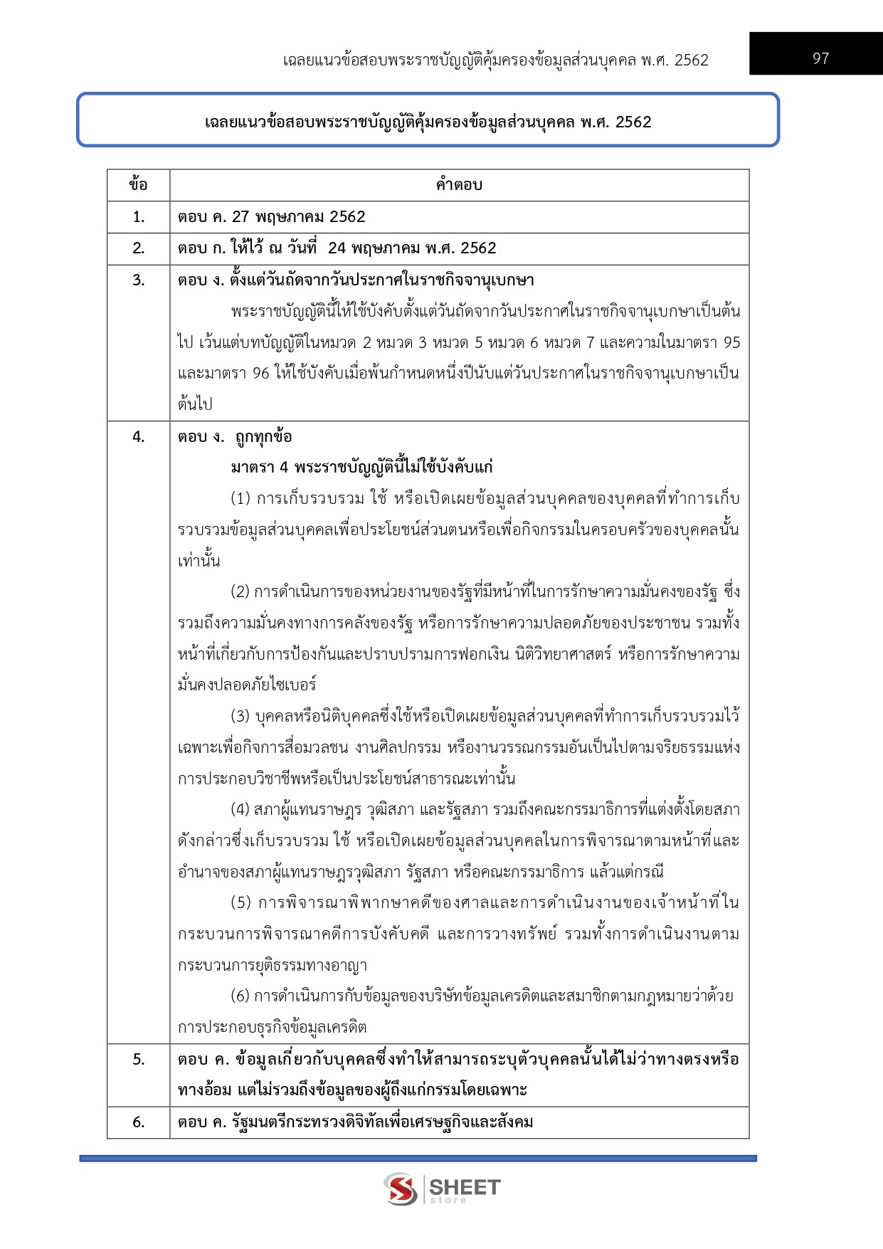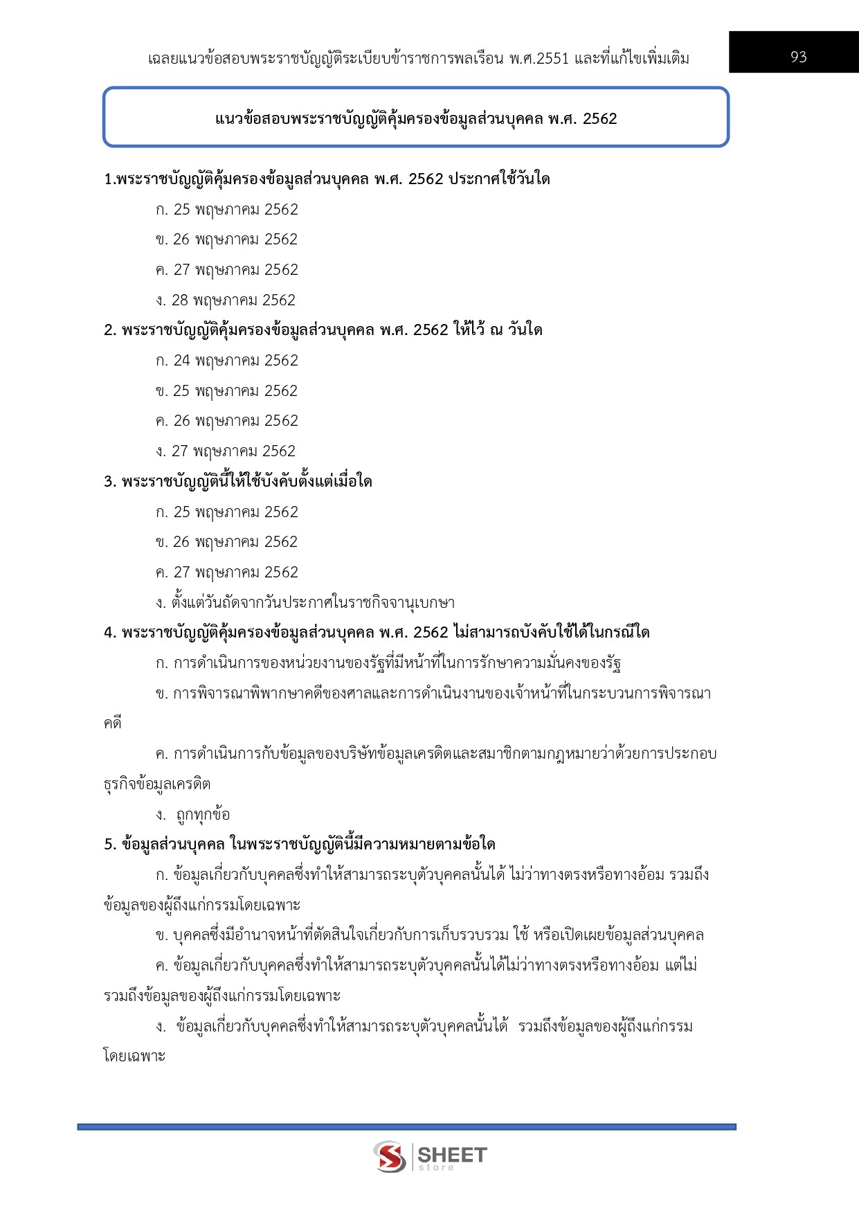 - แนวข้อสอบพระราชบัญญัติคุ้มครองข้อมูลส่วนบุคคล พ.ศ. 2562