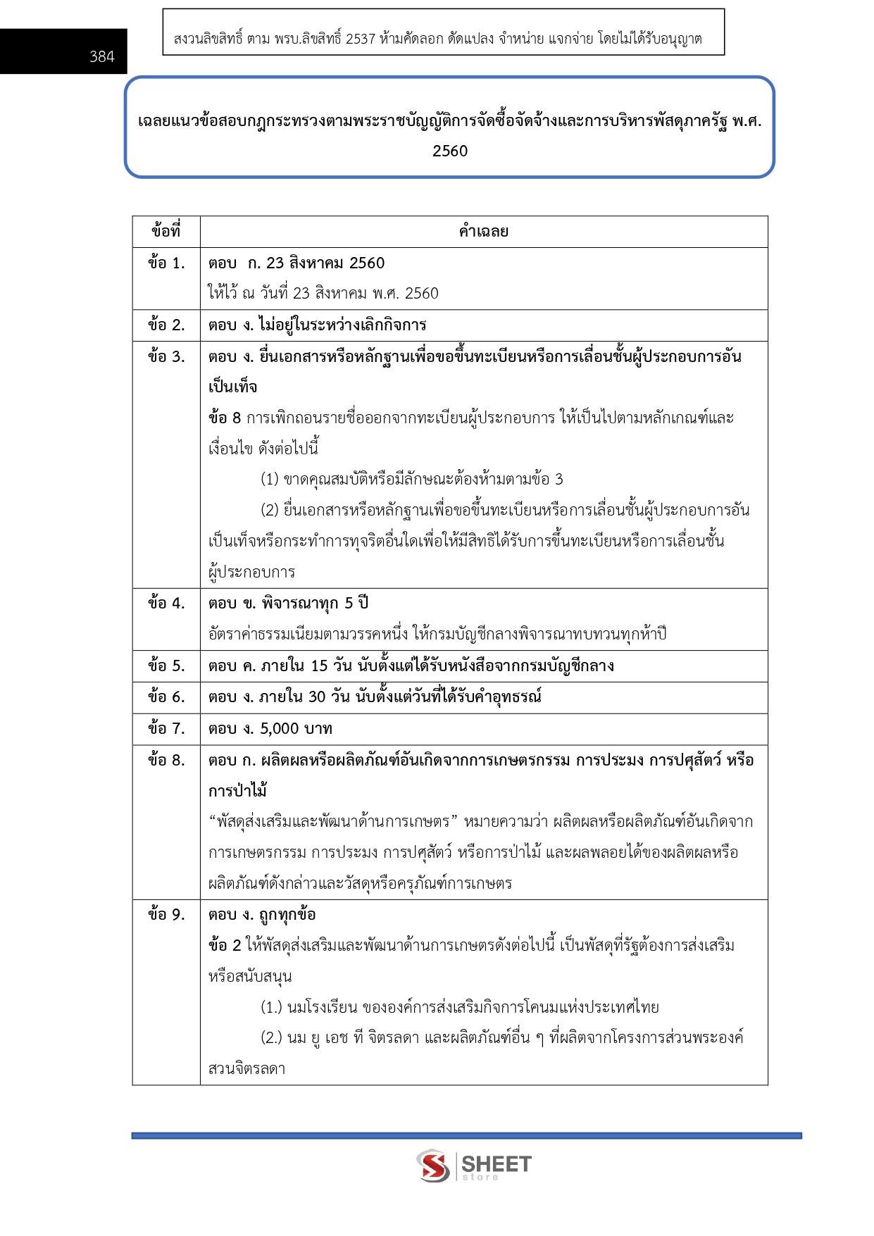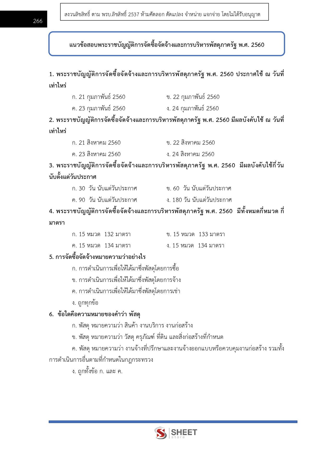 - แนวข้อสอบสรุปสาระสำคัญพระราชบัญญัติการจัดซื้อจัดจ้างและการบริหารพัสดุภาครัฐ พ.ศ. 2560