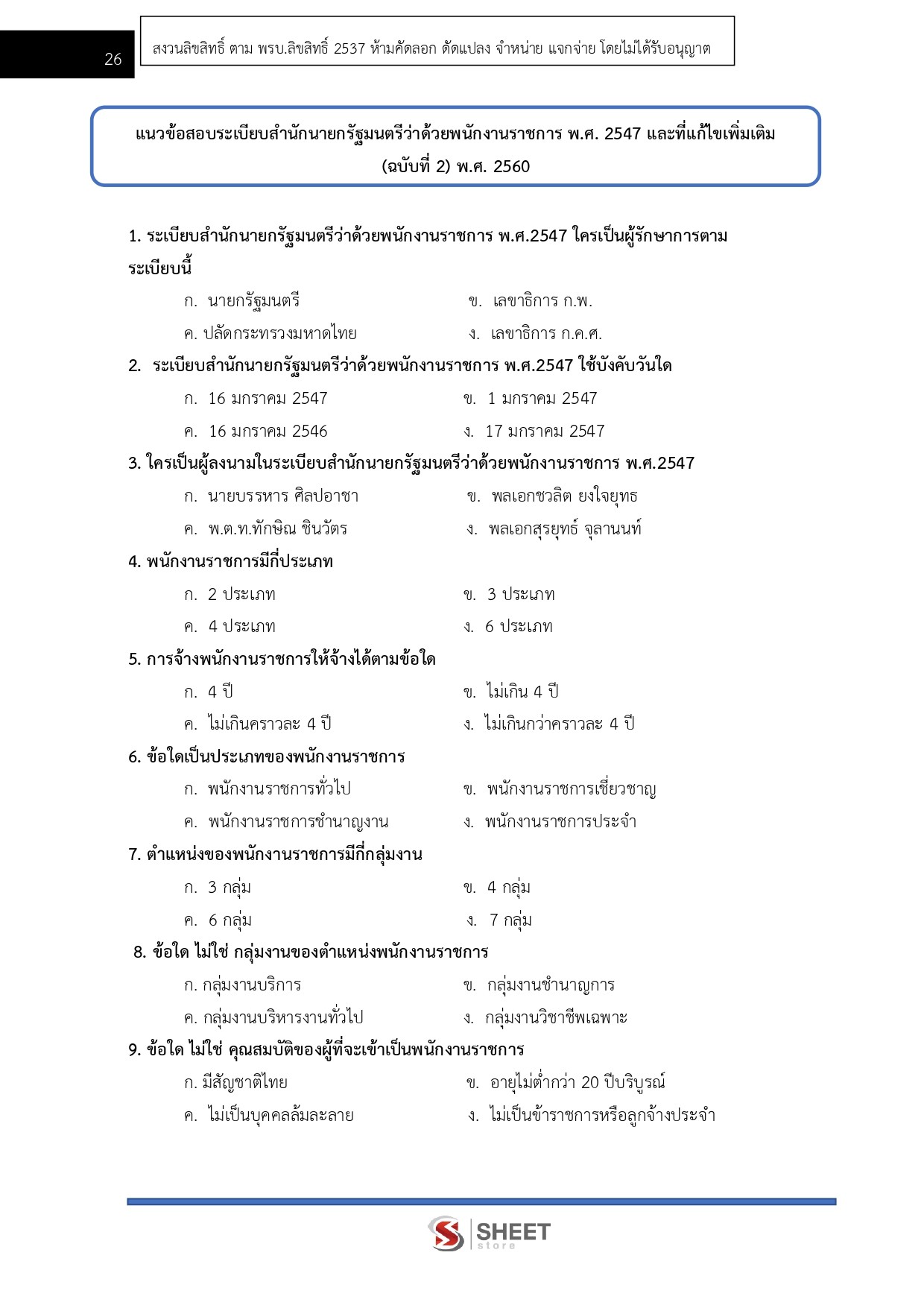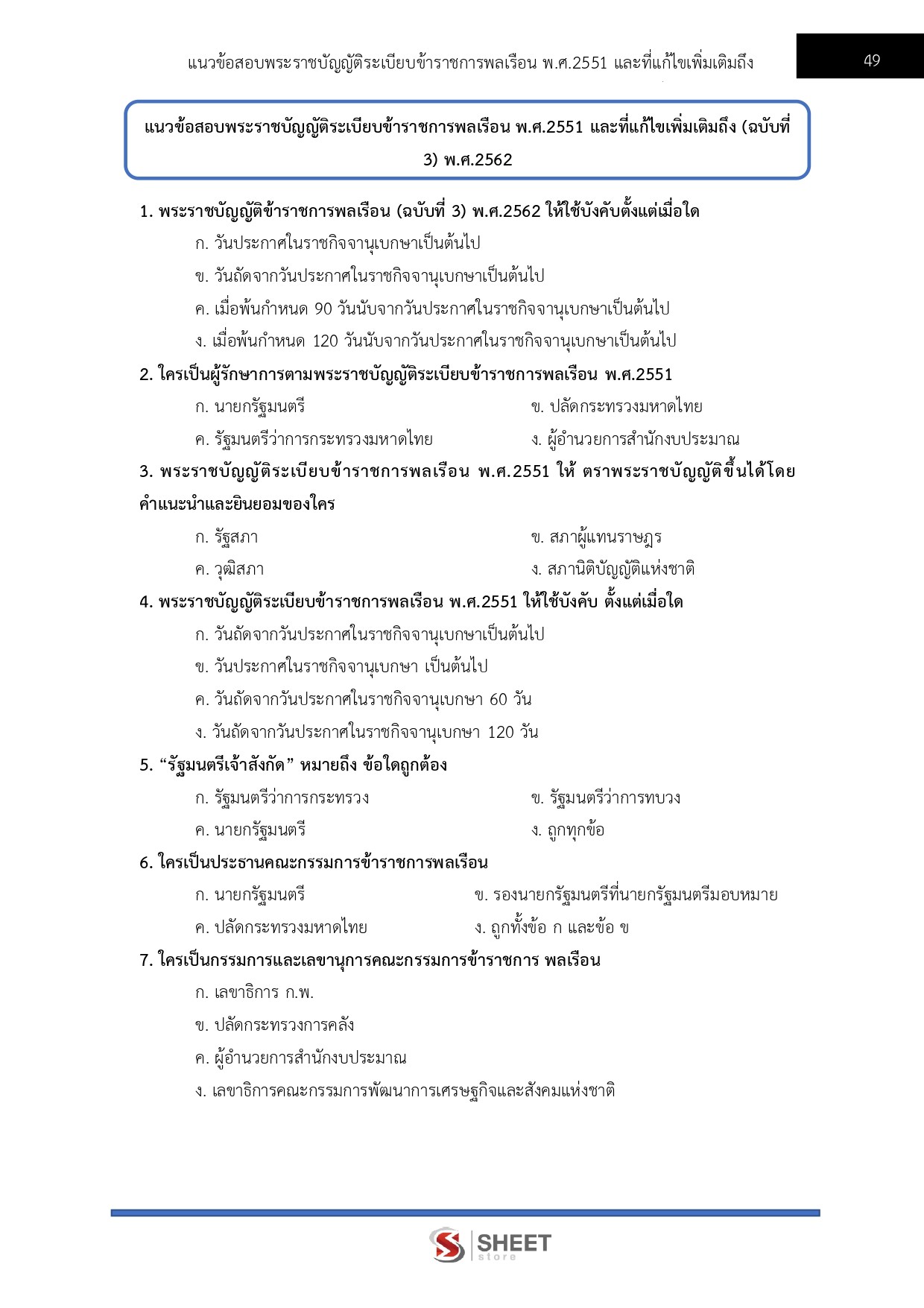 – แนวข้อสอบพระราชบัญญัติระเบียบข้าราชการพลเรือน พ.ศ. 2551 และแก้ไขเพิ่มเติม (ฉบับที่ 3) พ.ศ. 2562