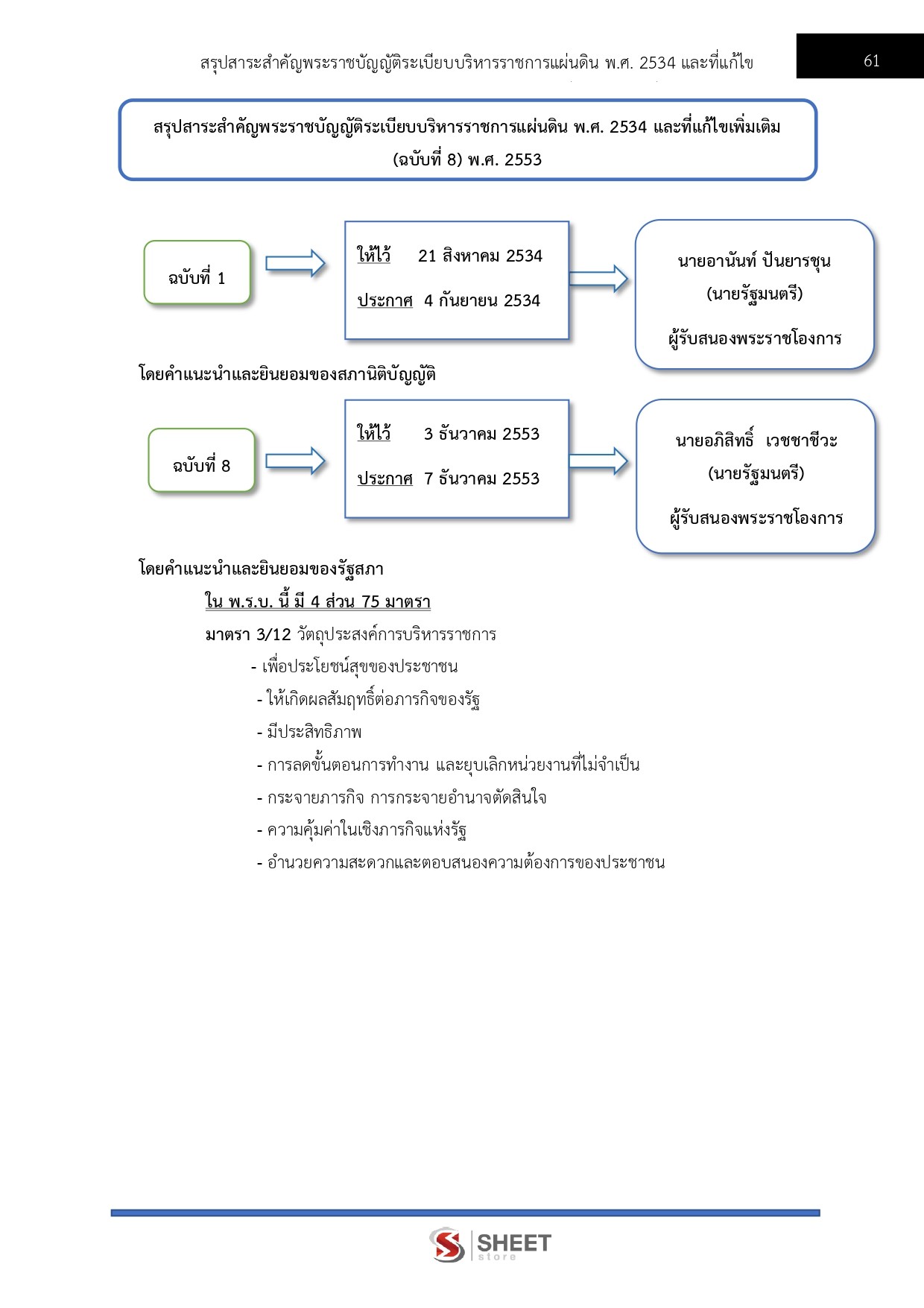 – สรุปพระราชบัญญัติระเบียบบริหารราชการแผ่นดิน พ.ศ. 2534 และที่แก้ไขเพิ่มเติมถึง (ฉบับที่ 8) พ.ศ. 2553