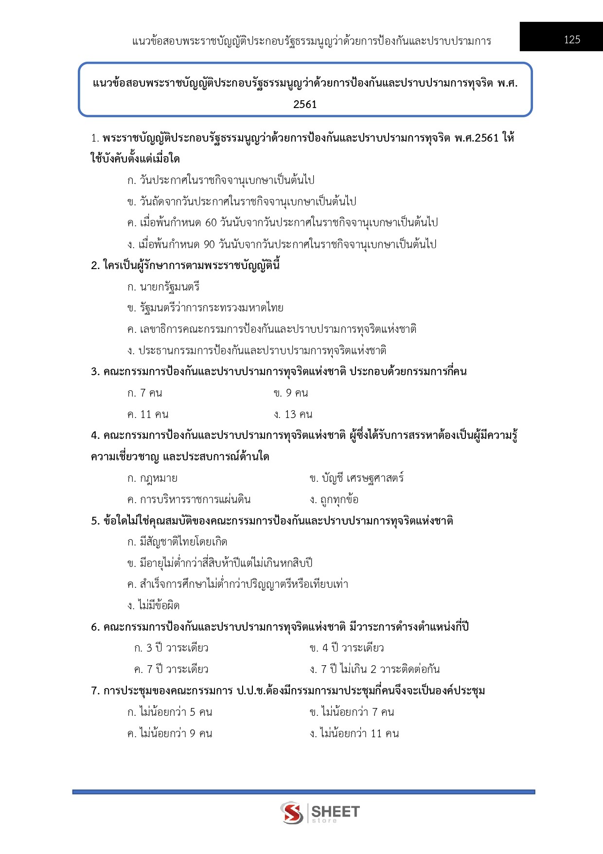 – แนวข้อสอบพระราชบัญญัติประกอบรัฐธรรมนูญว่าด้วยการป้องกันและปราบปรามการทุจริต พ.ศ. 2561