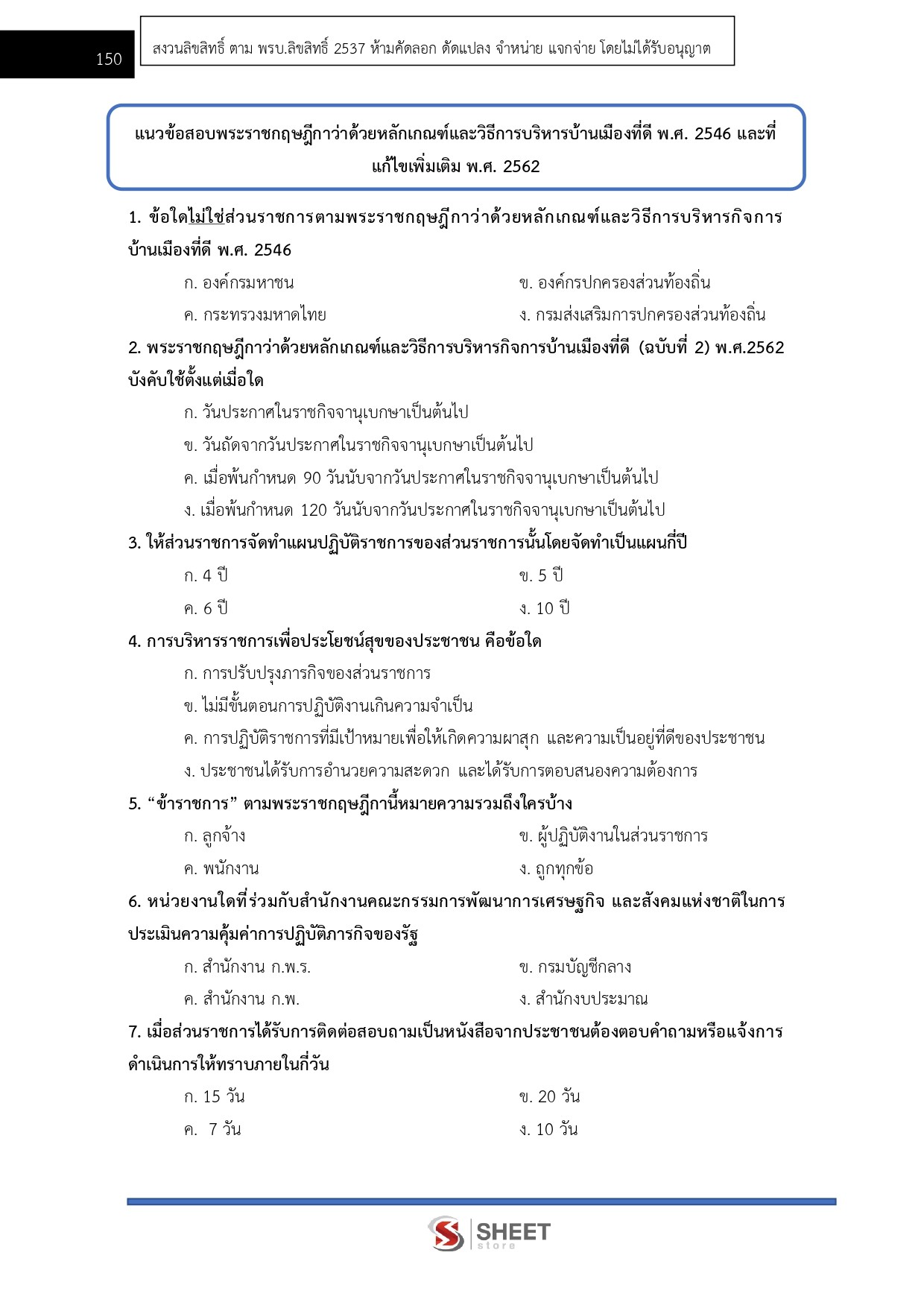 – แนวข้อสอบสรุปสาระสำคัญพระราชกฤษฎีกาว่าด้วยหลักเกณฑ์และวิธีการบริหารกิจการบ้านเมืองที่ดี พ.ศ. 2546 และที่แก้ไขเพิ่มเติมถึง (ฉบับที่ 2) พ.ศ. 2562