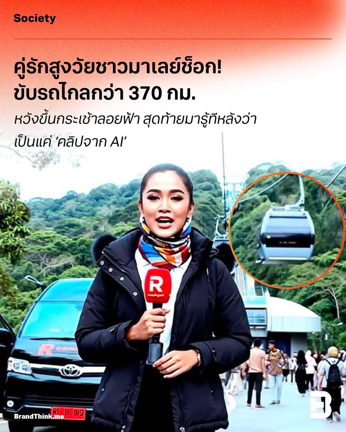 🤖🤖🤖 คู่รักสูงวัยชาวมาเลย์ช็อก!ขับรถไกลกว่า 370 กม. หวังขึ้นกระเช้าลอยฟ้า สุดท้ายมารู้ทีหลังว่าเป็นแค่ ‘คลิปจาก AI’