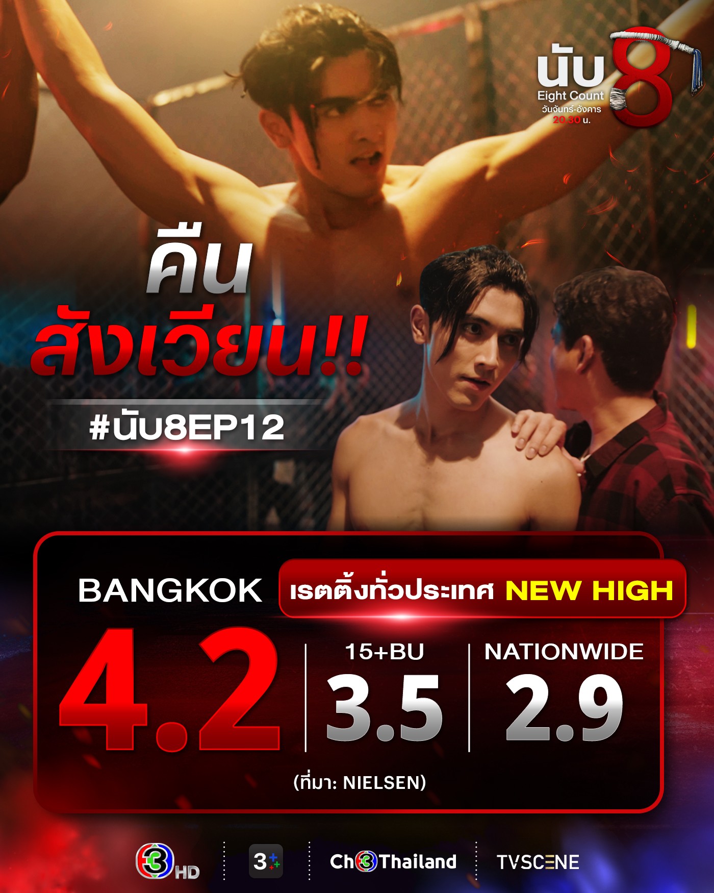 📌 เรตติ้งละคร "นับ 8" EP.12 เรตติ้งกรุงเทพฯ 4.2 / เรตติ้งทั่วประเทศ 2.9 / เรตติ้งทั่วประเทศ New High .