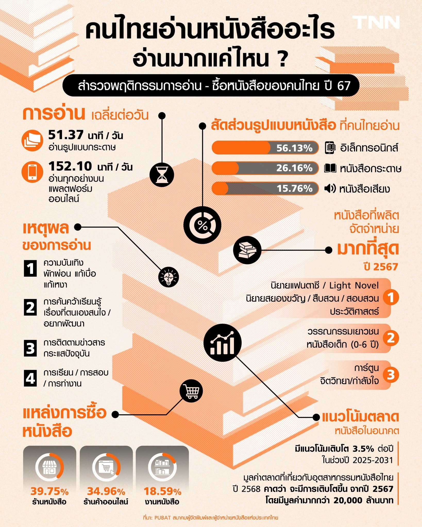 PUBAT สมาคมผู้จัดพิมพ์และผู้จำหน่ายหนังสือแห่งประเทศไทย ได้จัดทำข้อมูลสถิติงานหนังสือปี 2568