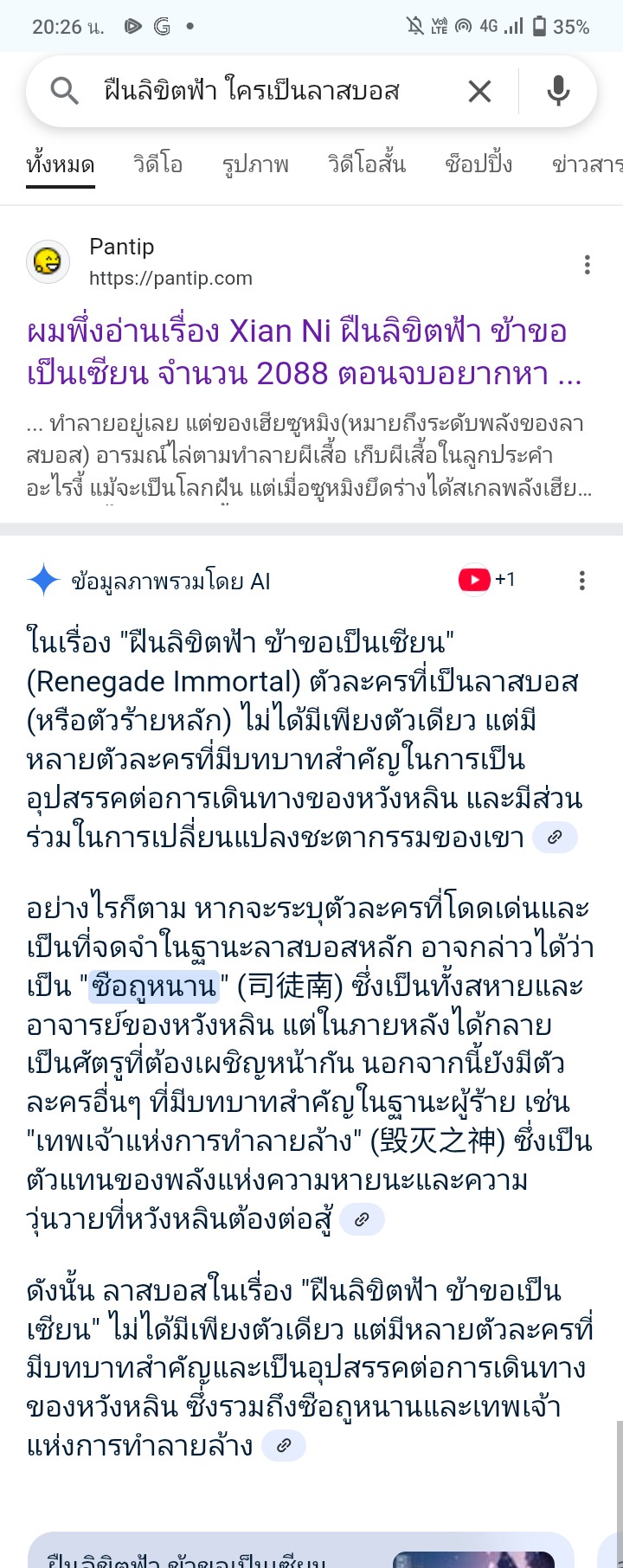 สวัสดีค่ะ พอดีพึ่งมาตามดูอนิเมะเรื่องนี้ ไม่ได้อ่านนิยายมาค่ะ เราสงสัยว่าใครคือลาสบอสของเรื่องเราจึงไปค้นหาดู AI มันตอบว่าคือซือถูหนาน จริงมั้ยคะ😭