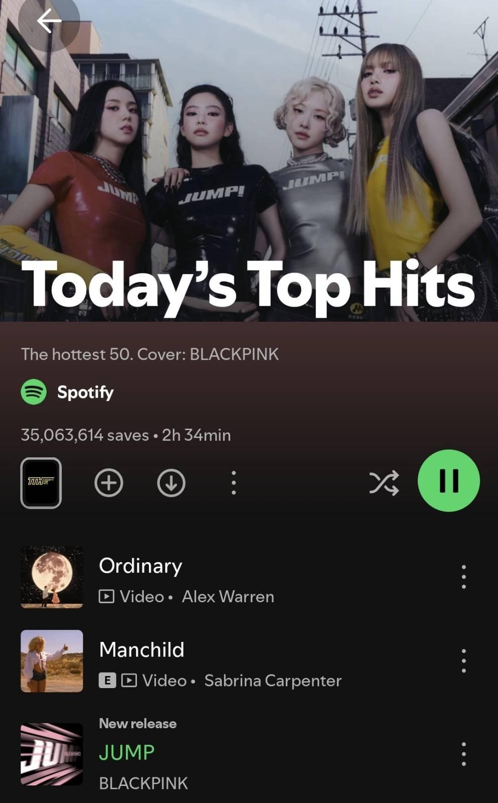 “JUMP” ของ BLACKPINK เปิดตัวที่อันดับ 3 บนเพลย์ลิสต์ ‘Today’s Top Hits’ ของ Spotify