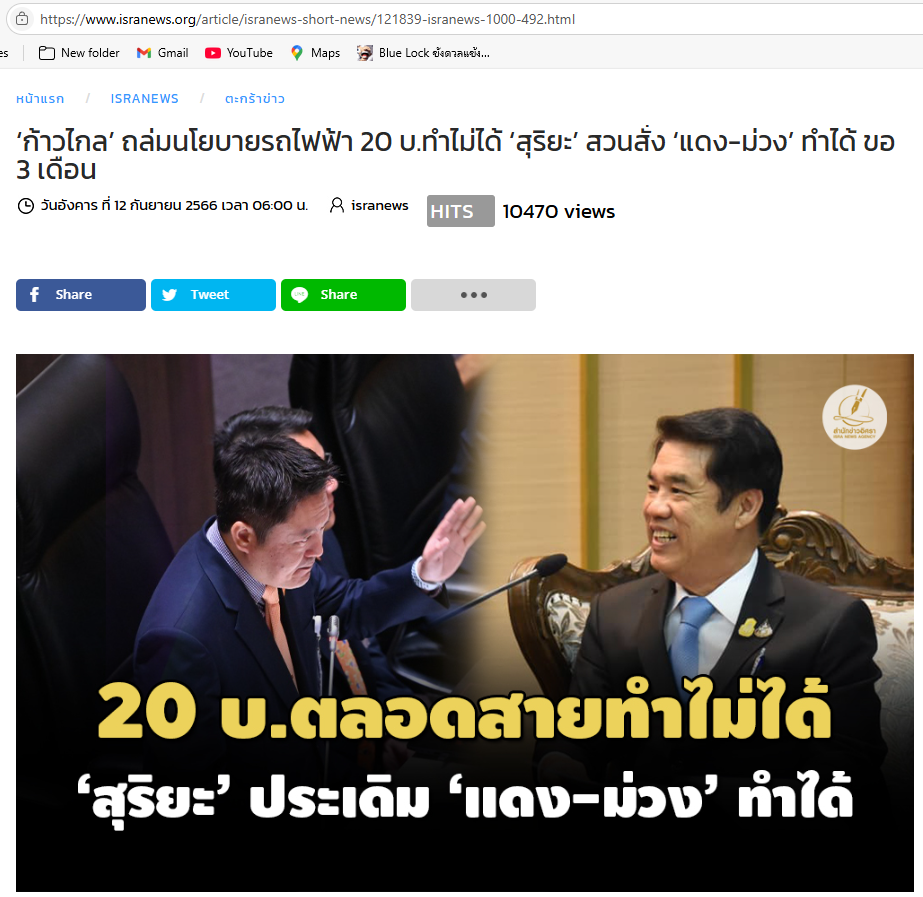 ‘ก้าวไกล’ ถล่มนโยบายรถไฟฟ้า 20 บ.ทำไม่ได้ ‘สุริยะ’ สวนสั่ง ‘แดง-ม่วง’ ทำได้ ขอ 3 เดือน