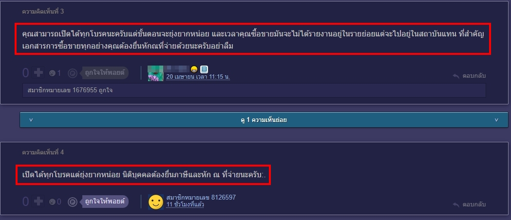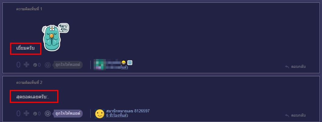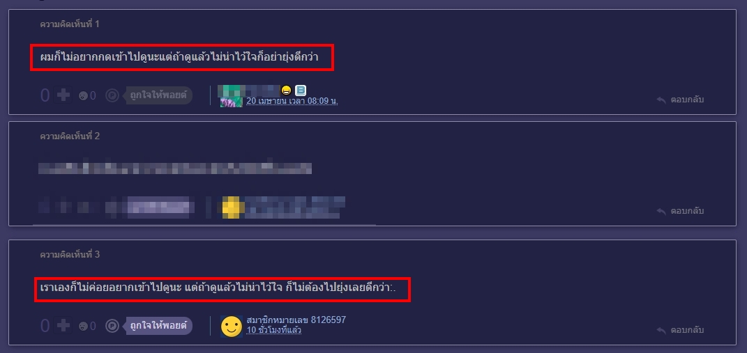 สอบถามพฤติกรรมการแสดงความเห็นของสมาชิกท่านนี้ด้วยค่ะ
