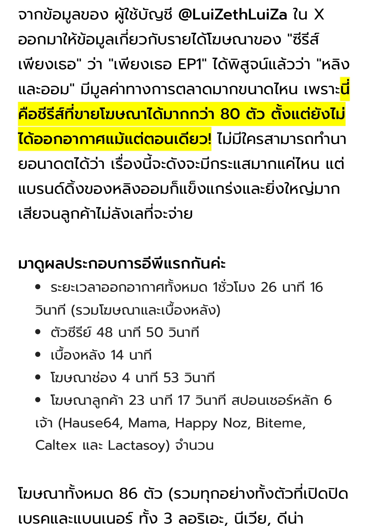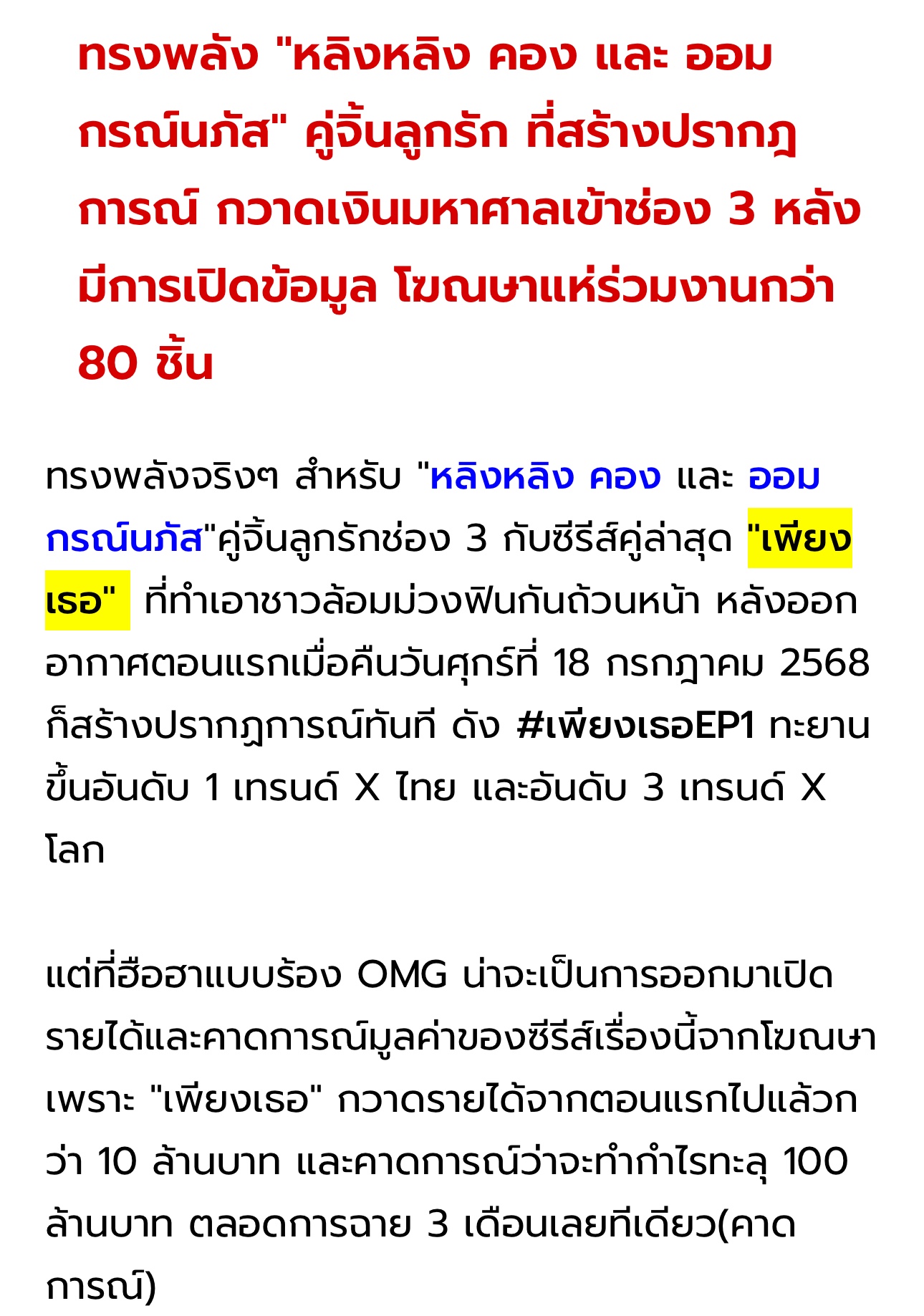 ทรงพลัง หลิง-ออม สร้างปรากฏการณ์ กวาดเงินมหาศาลเข้าช่อง 3