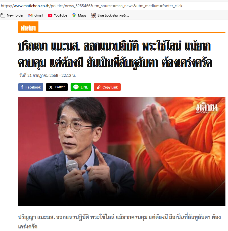 ปริญญา แนะมส. ออกแนวปฏิบัติ พระใช้ไลน์ แม้ยากควบคุม แต่ต้องมี ยันเป็นที่ลับหูลับตา ต้องเคร่งครัด
