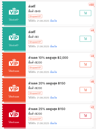 - แนะนำให้ดูระดับ USER ของคุณ + ดูรายละเอียด shopee vip ว่าคูปอง โค้ดส่งฟรีใช้ร่วมกันได้ไหม