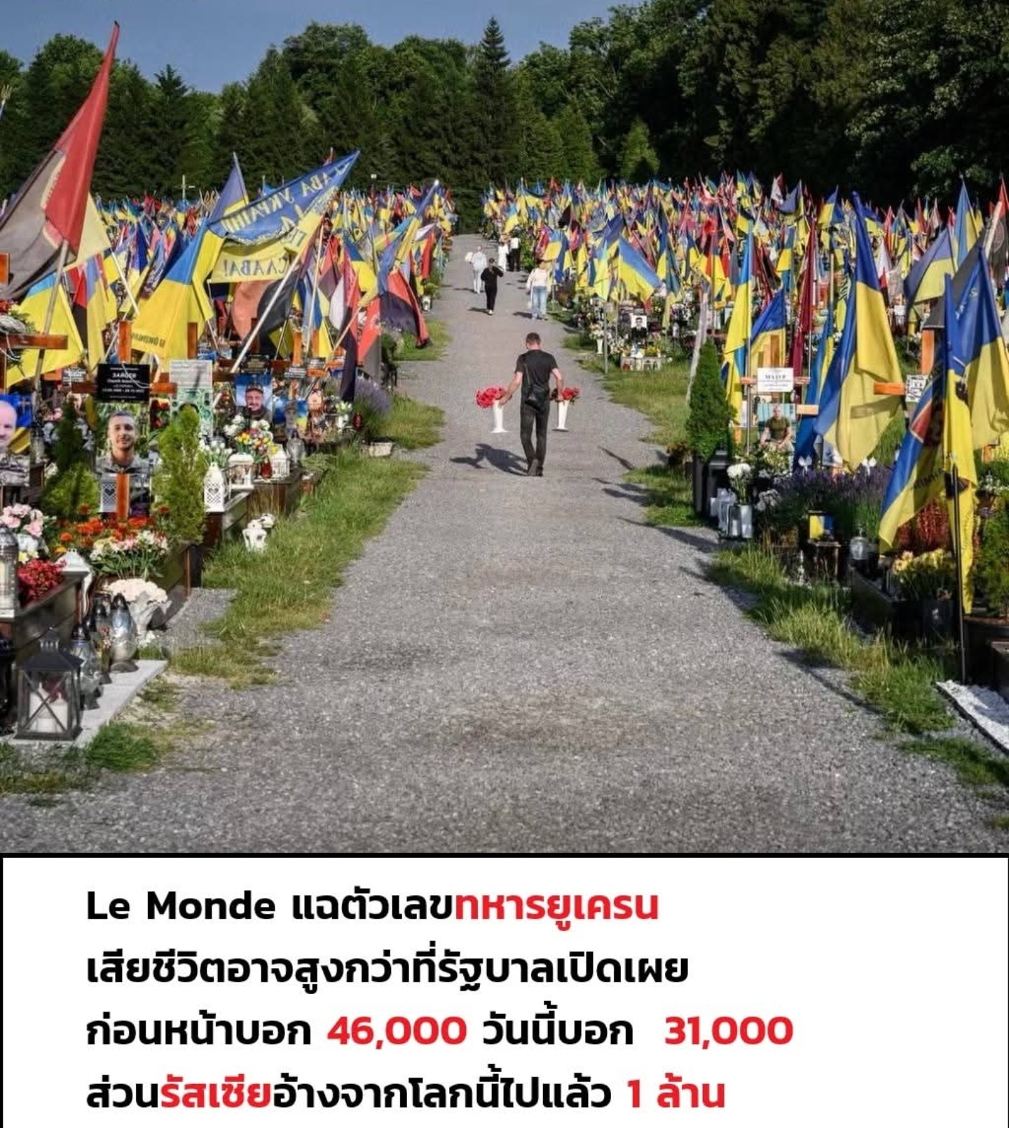 Le Monde ฝรั่งเศส ได้รายงานว่าจำนวนทหารยูเครน ตายในสงคราม“สูงอย่างมาก” ขณะที่รัสเซีย ประเมินว่ายูเครน ตาย 1.08 ล้านคน