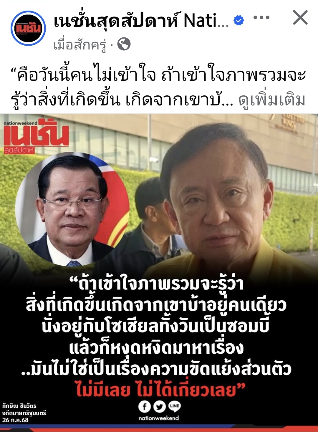 ทักษิณเฉลยแล้วว่า ฮุนเซนบ้าโซเชี่ยล สสิ่มก็บัาตาม