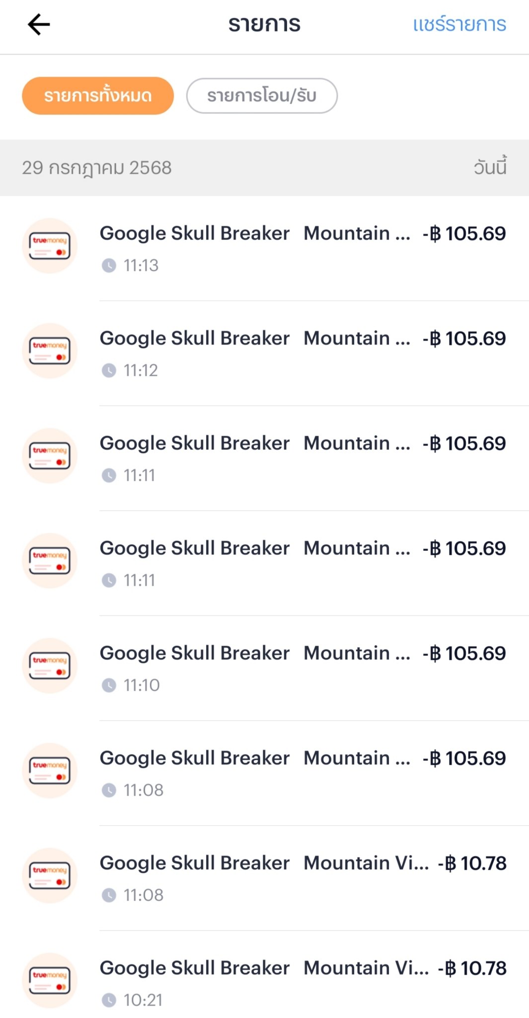 ผมโดนหักเงินจาก google skull breaker mountain view usa ผ่านทรูมันนี่วอเลต