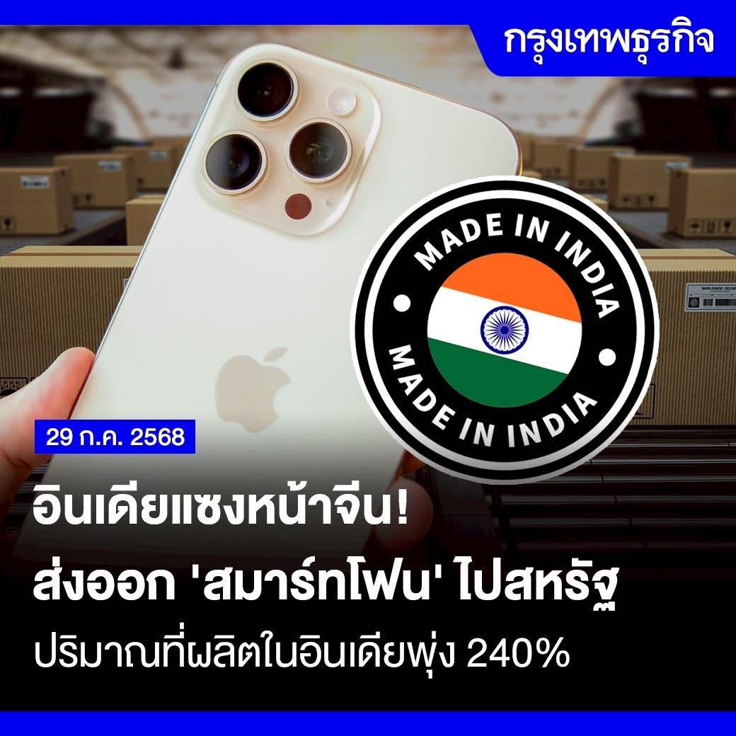 แดนภารตะผงาดแทนจีน! ยึดบัลลังก์ผู้ส่งออกสมาร์ทโฟนรายใหญ่สุดไปสหรัฐ ท่ามกลางศึกการค้าเดือด Apple เร่งย้ายฐานผลิต หวังหนีความเสี่ยงจากแดนมังกร