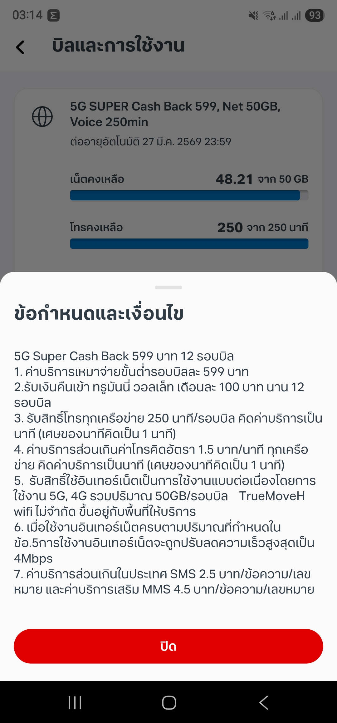 ใช่แพ็คเกจ 599 ของทรู มีแคชแบกเป็นทรูวอลเลท แต่ไม่ได้รับเงินเลย